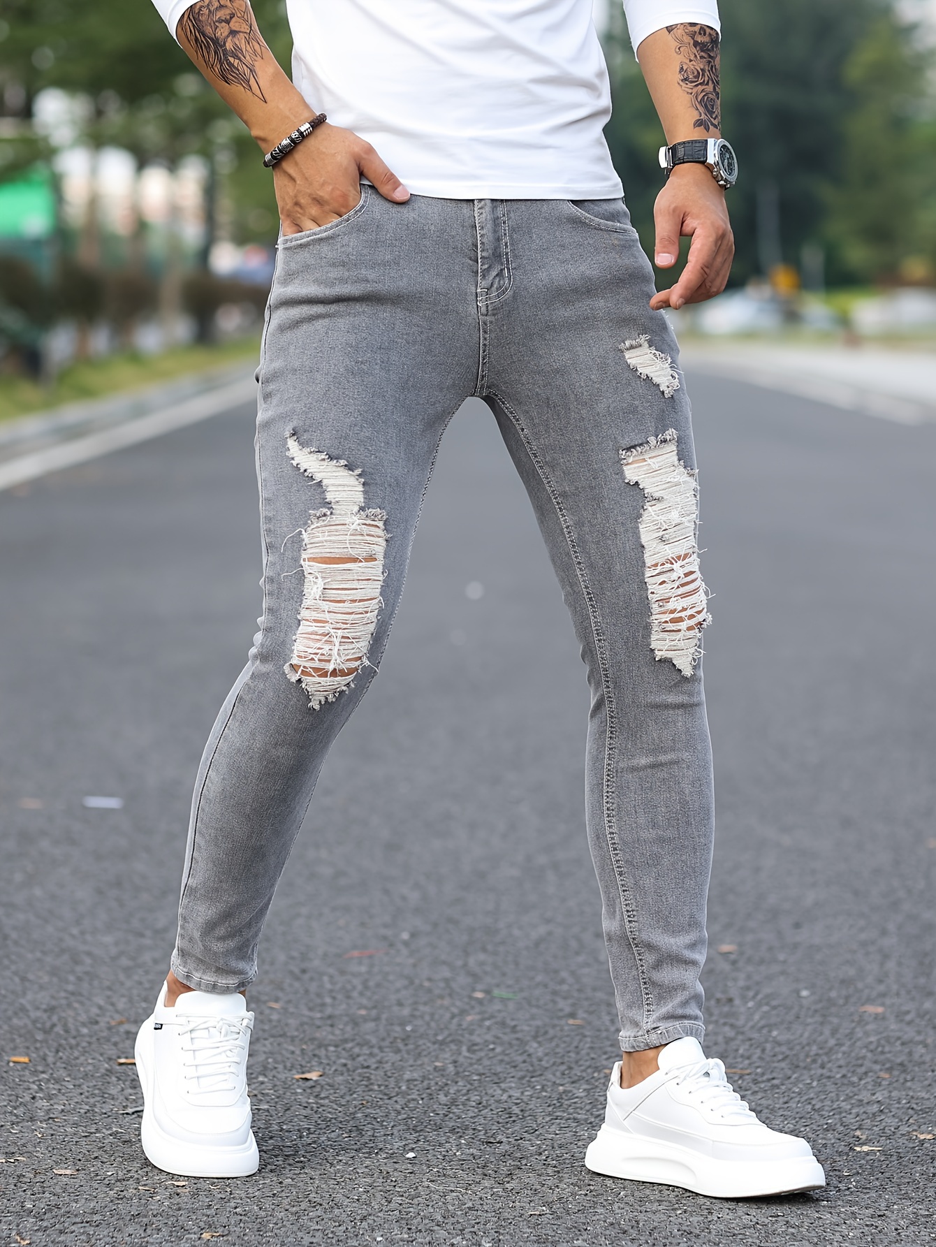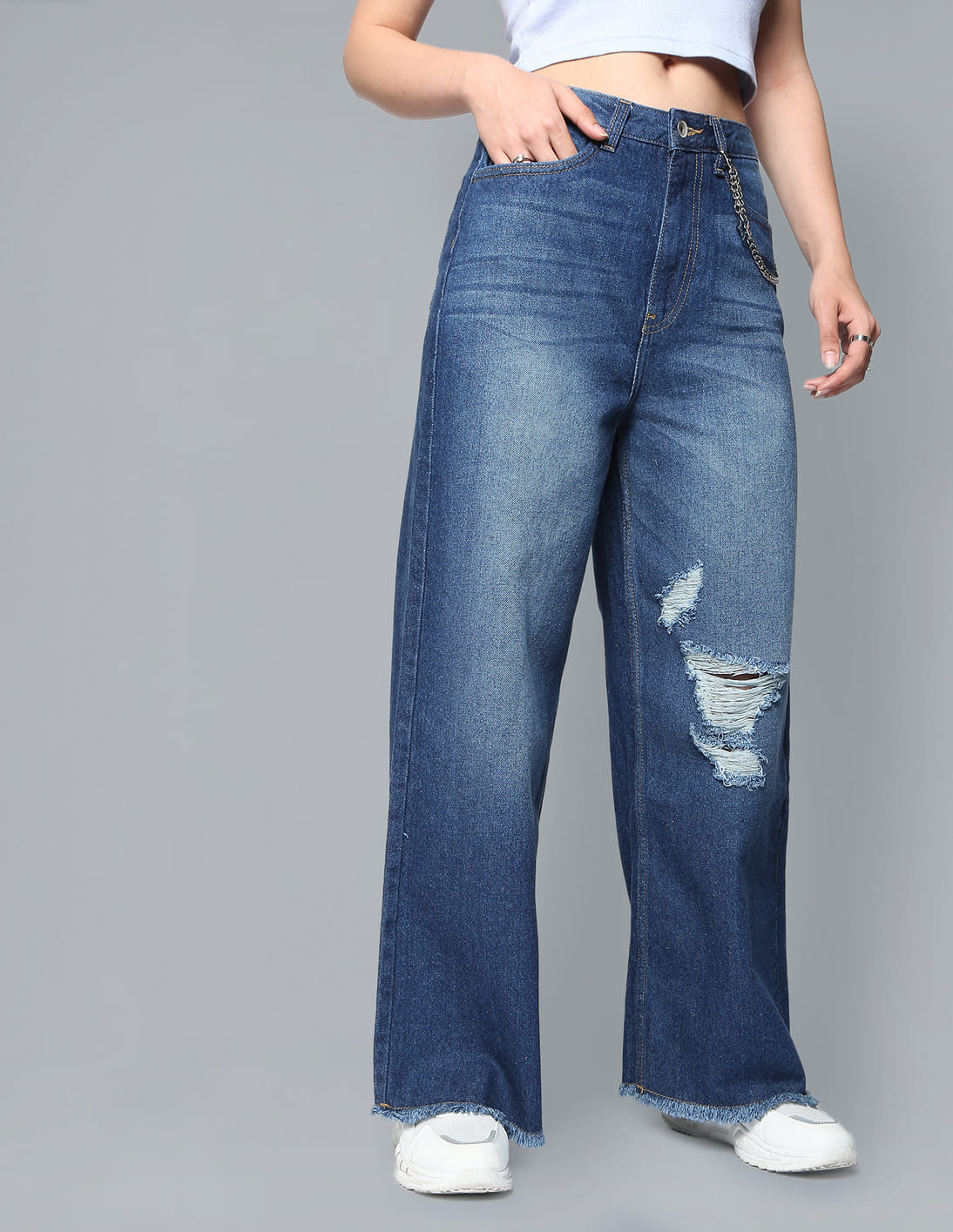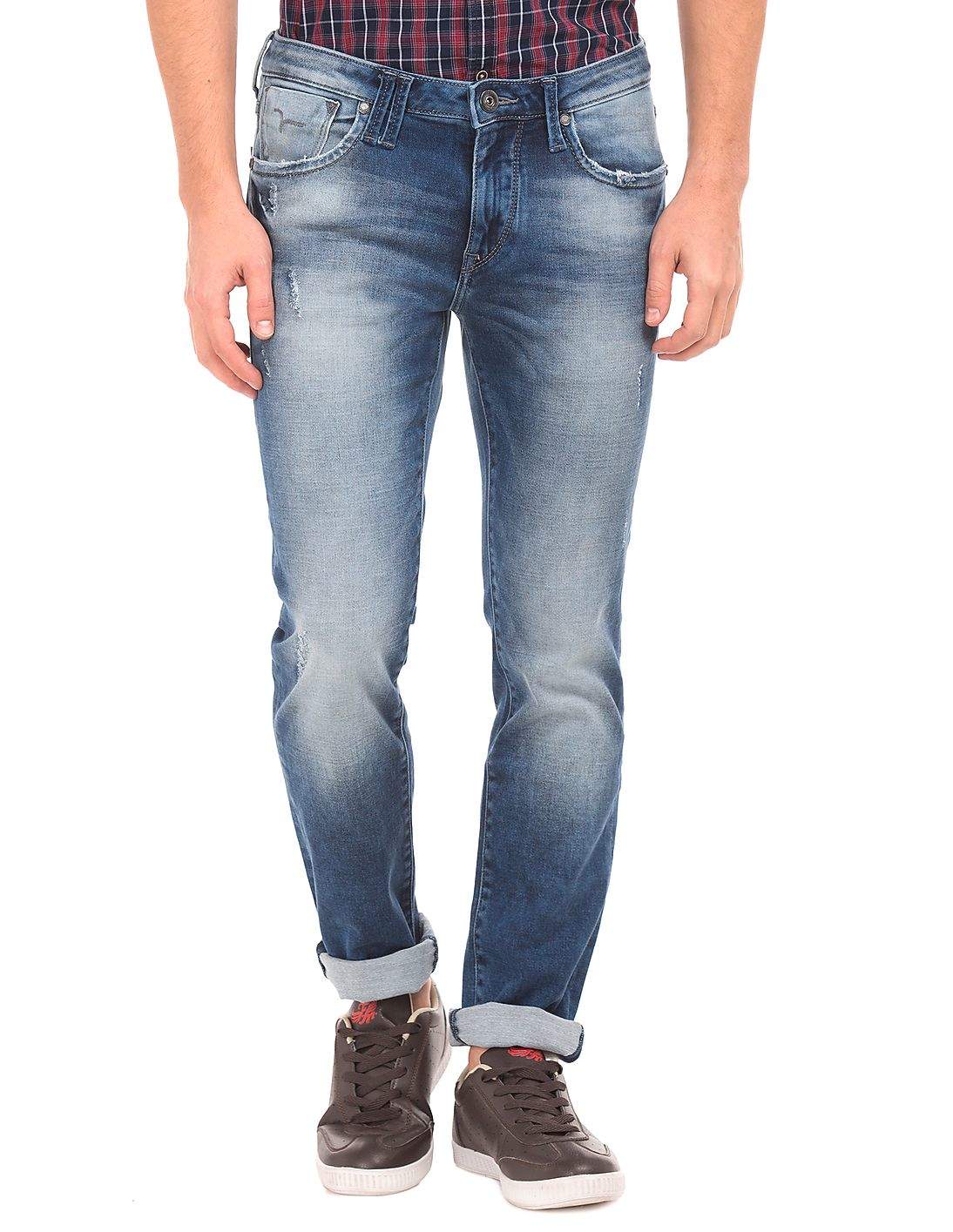 machine distressed jeans
