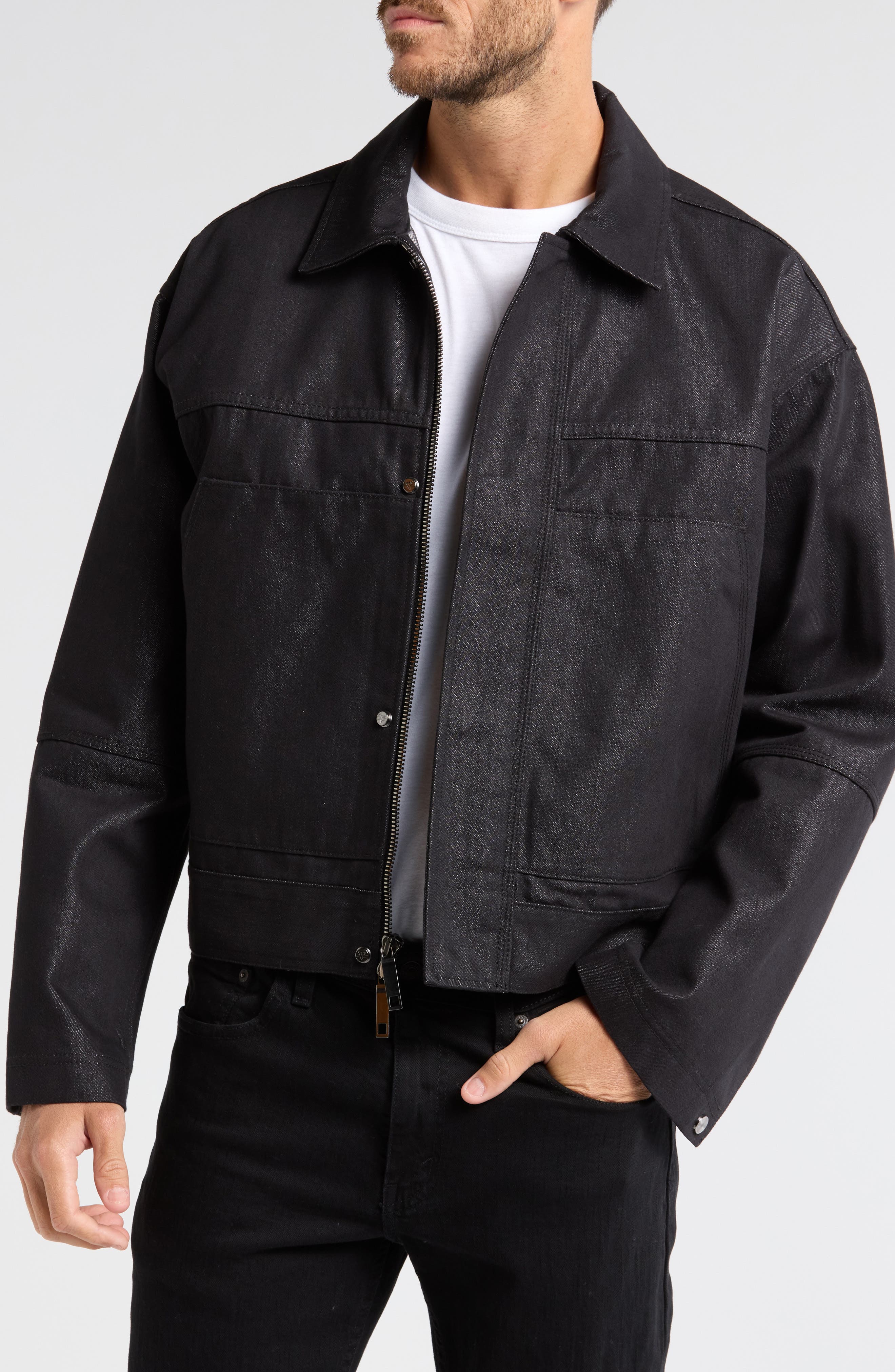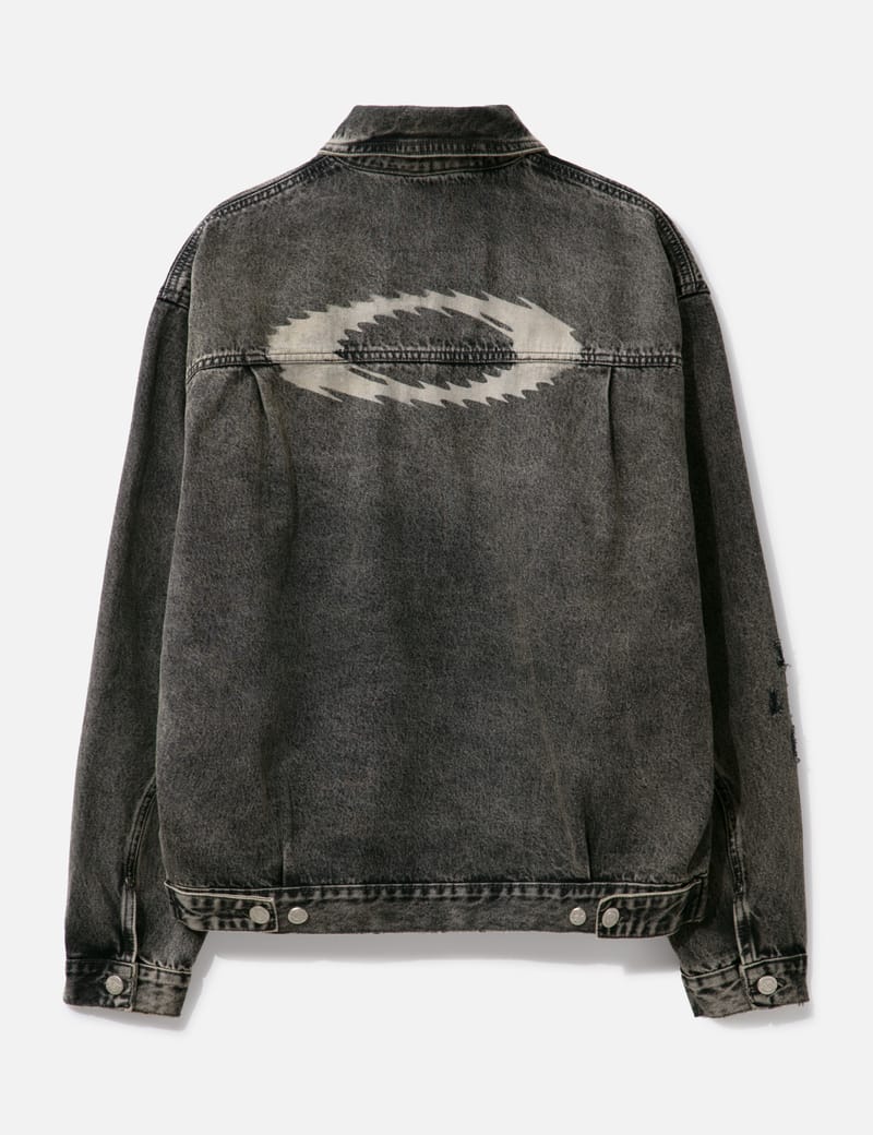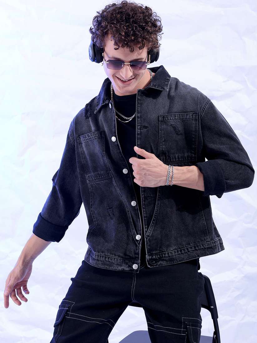 mens distressed denim jacket black