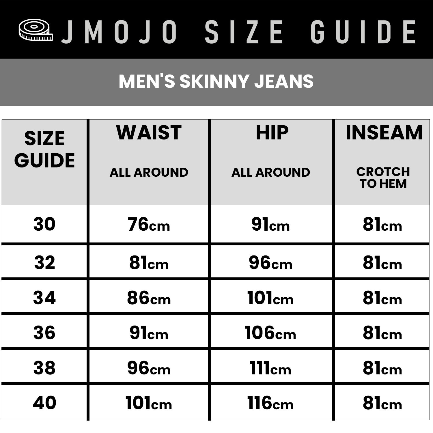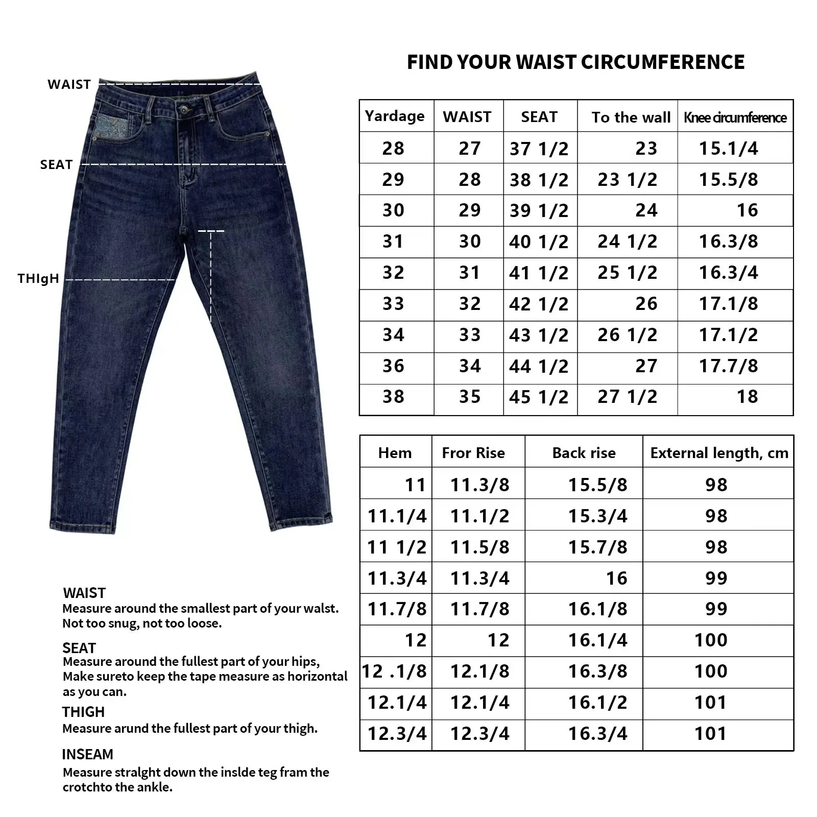 mens jeans pants size chart