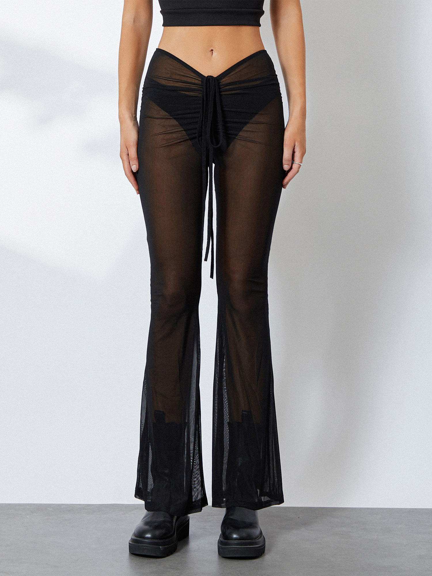 mesh flared trousers