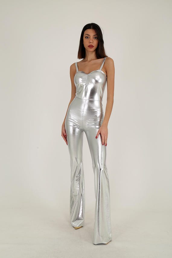 metallic silver jumpsuit
