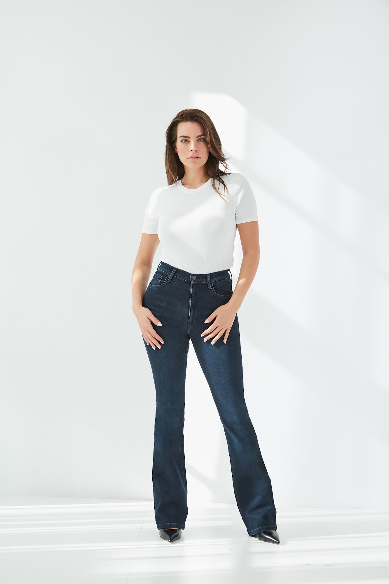 navy blue flared jeans