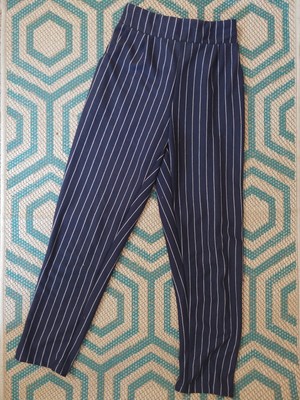 navy blue pinstripe pants
