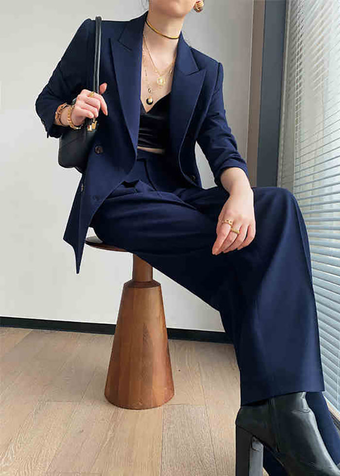navy pantsuit