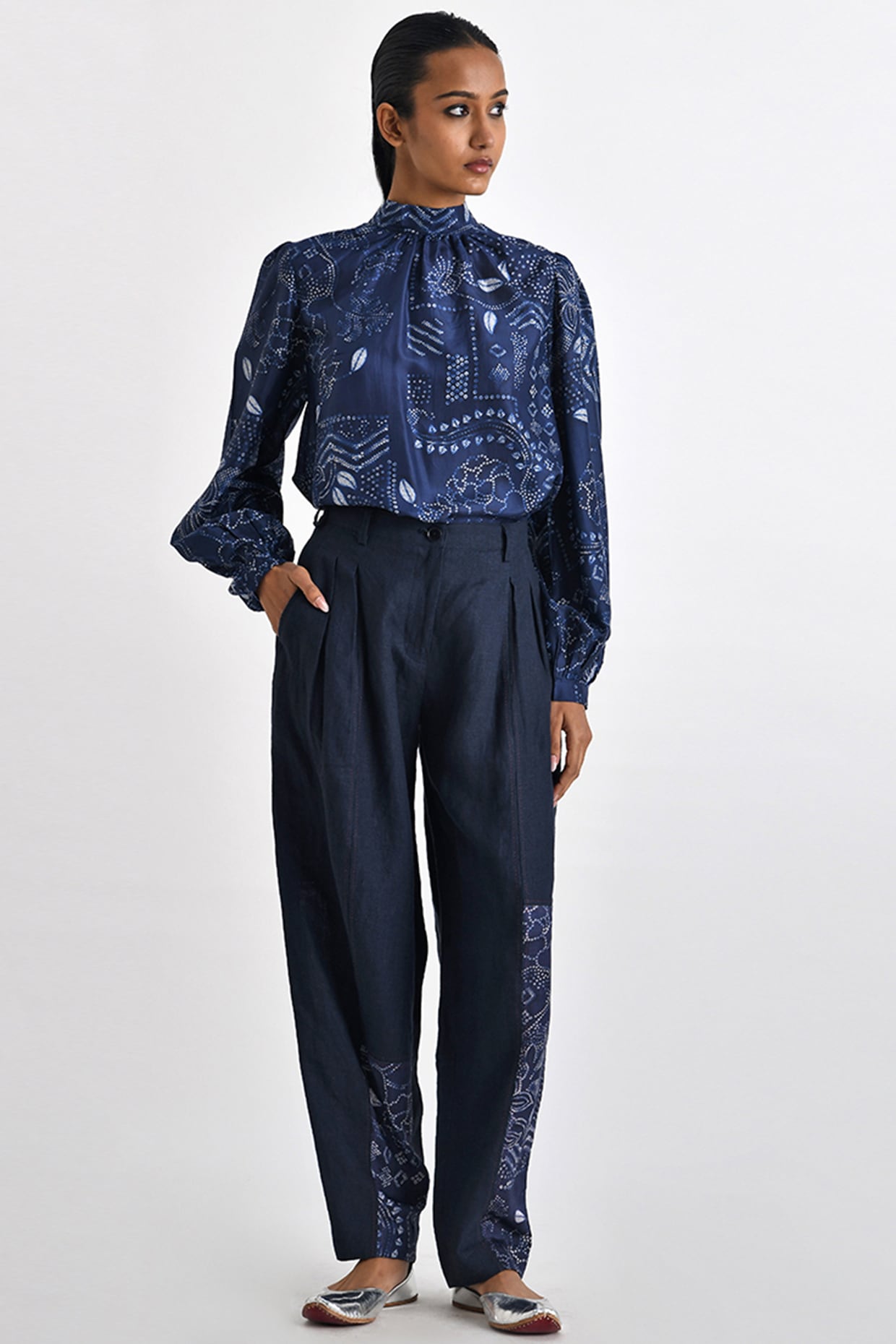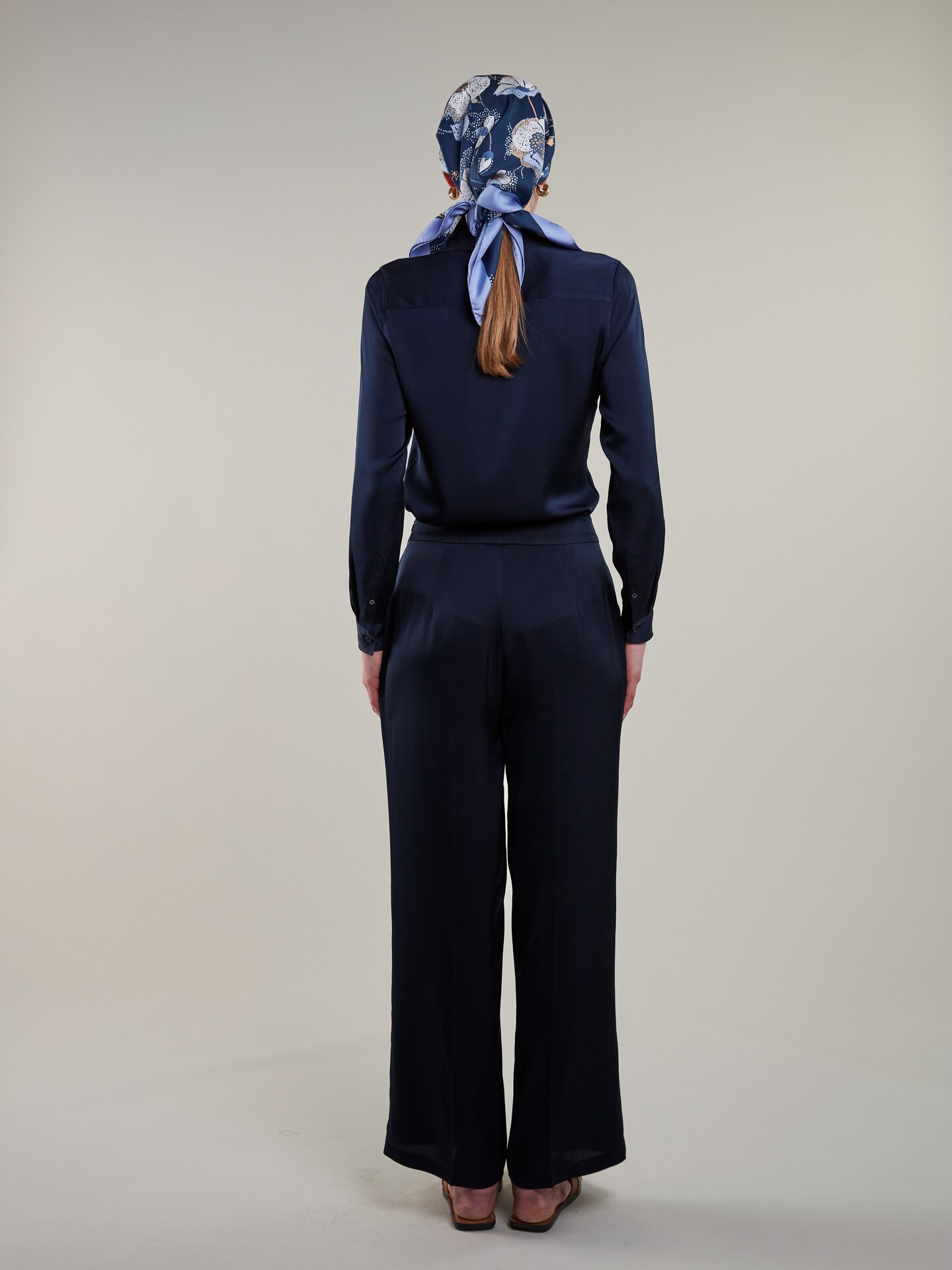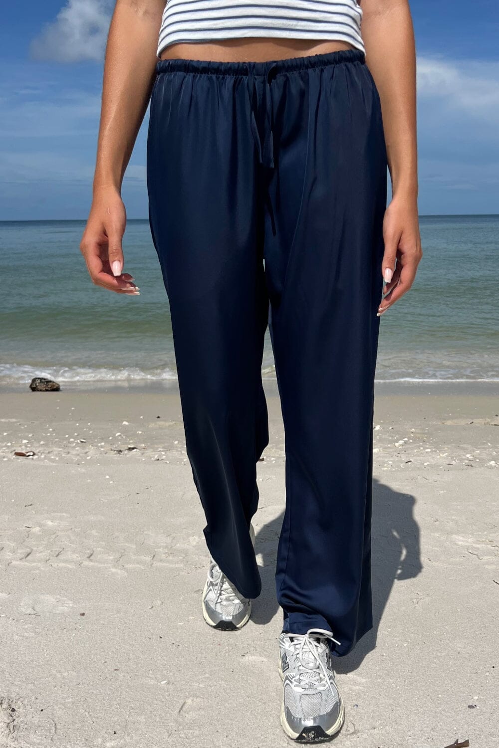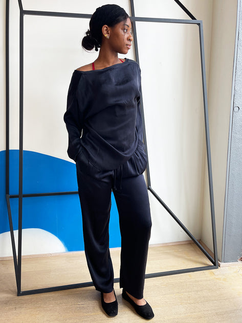 navy silk pants