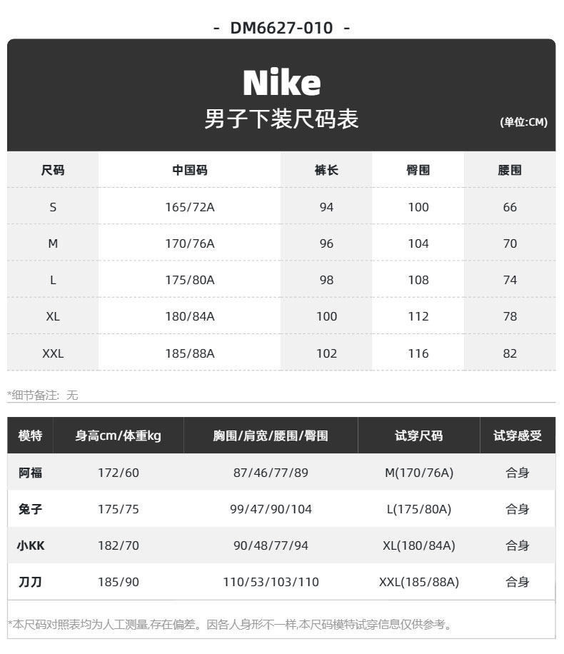nike size chart sweatpants
