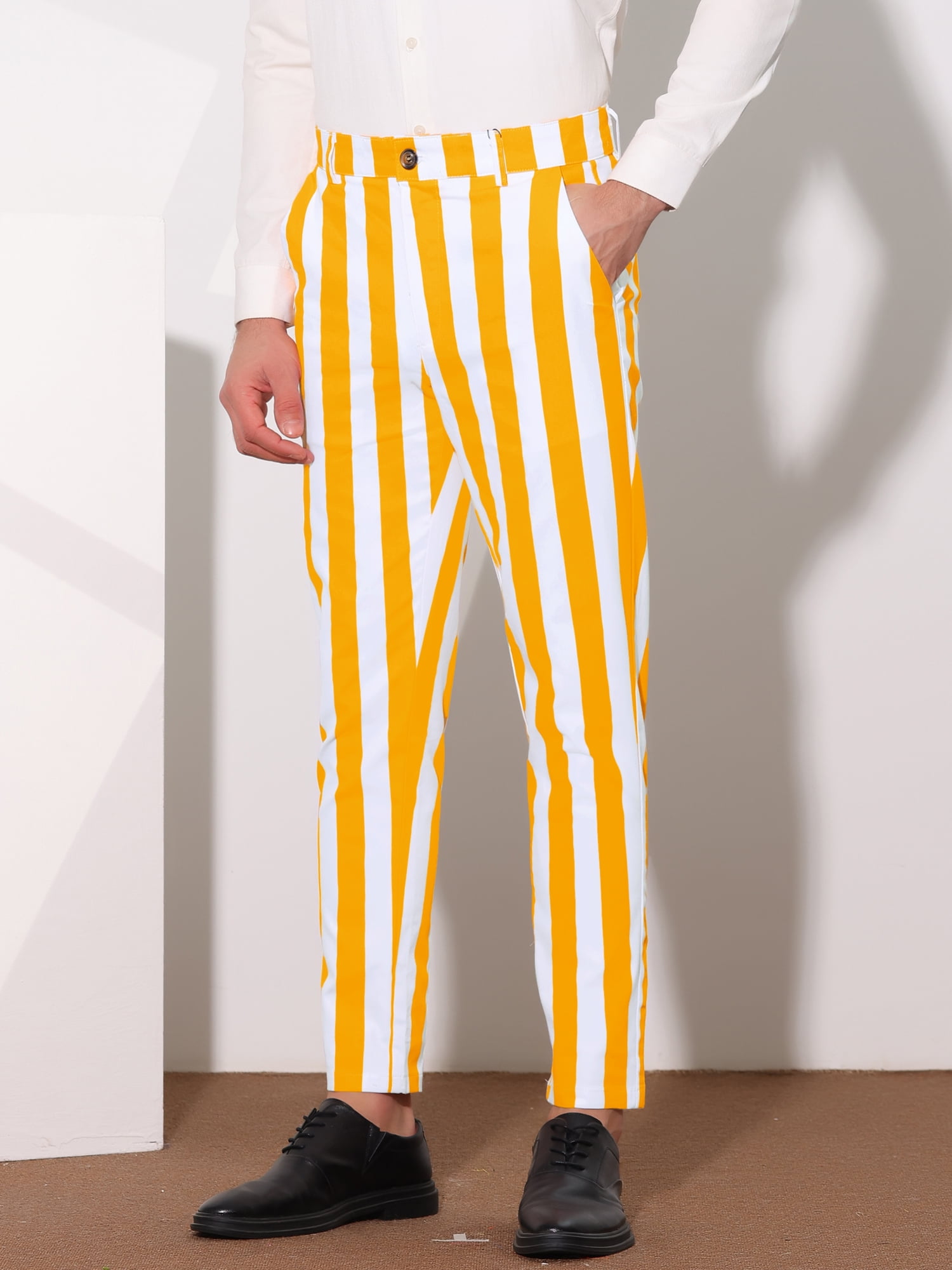 off white yellow stripe pants
