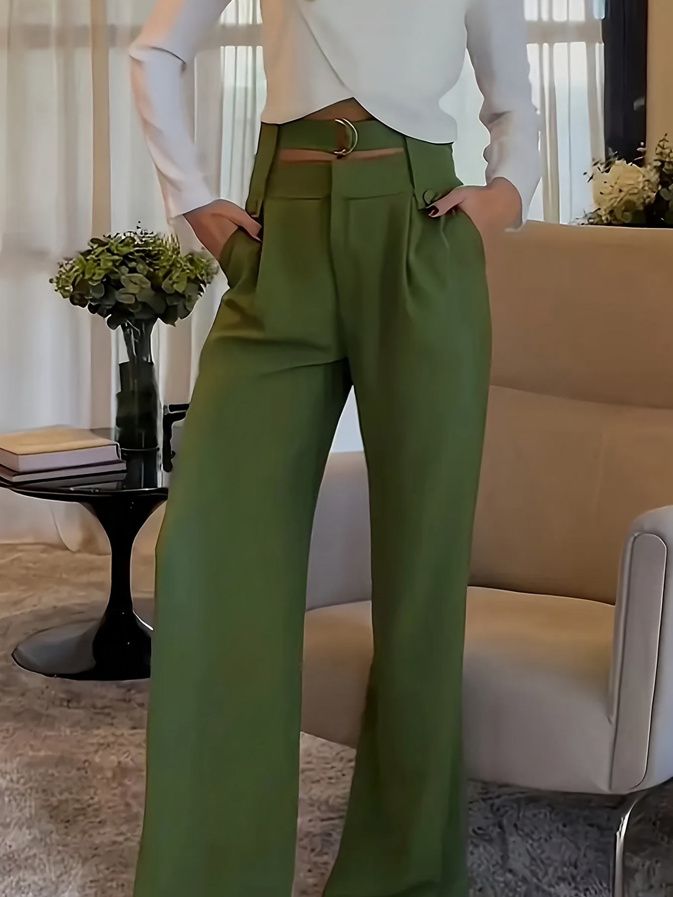 olive green loose pants