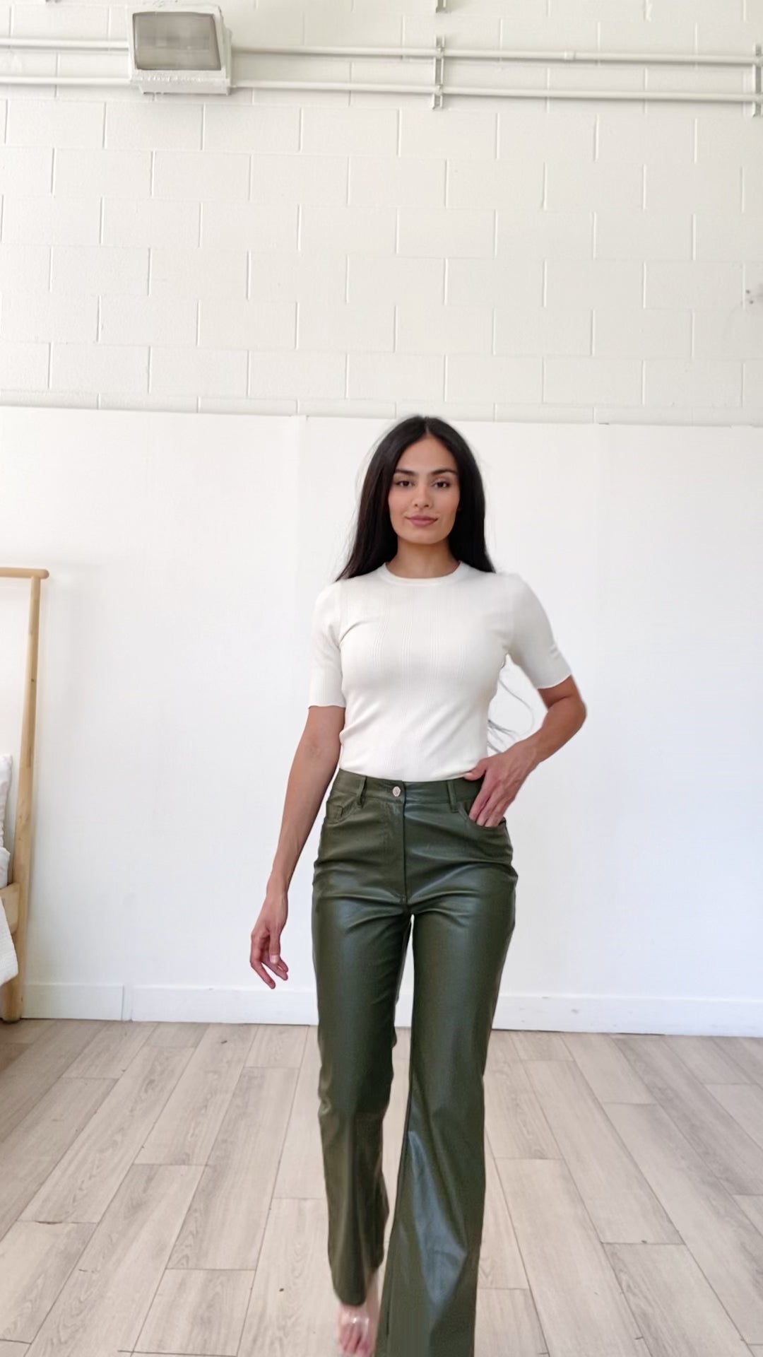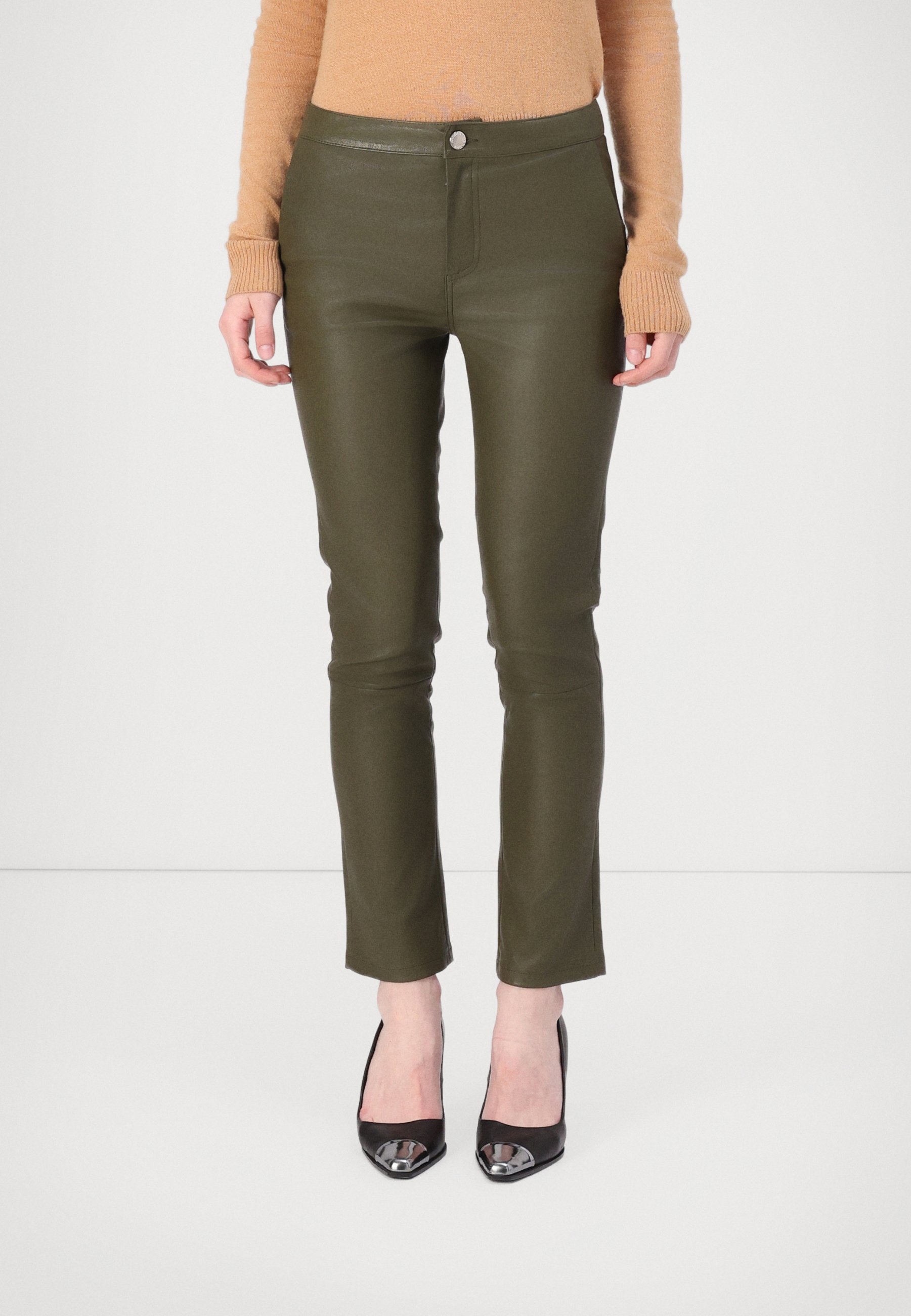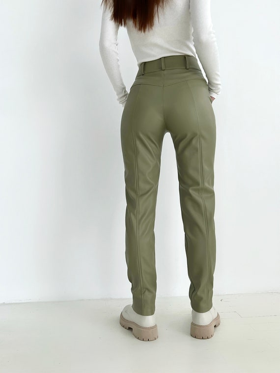 olive leather trousers