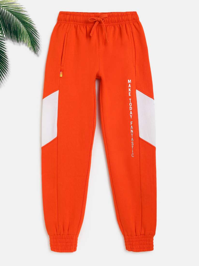 orange and white joggers