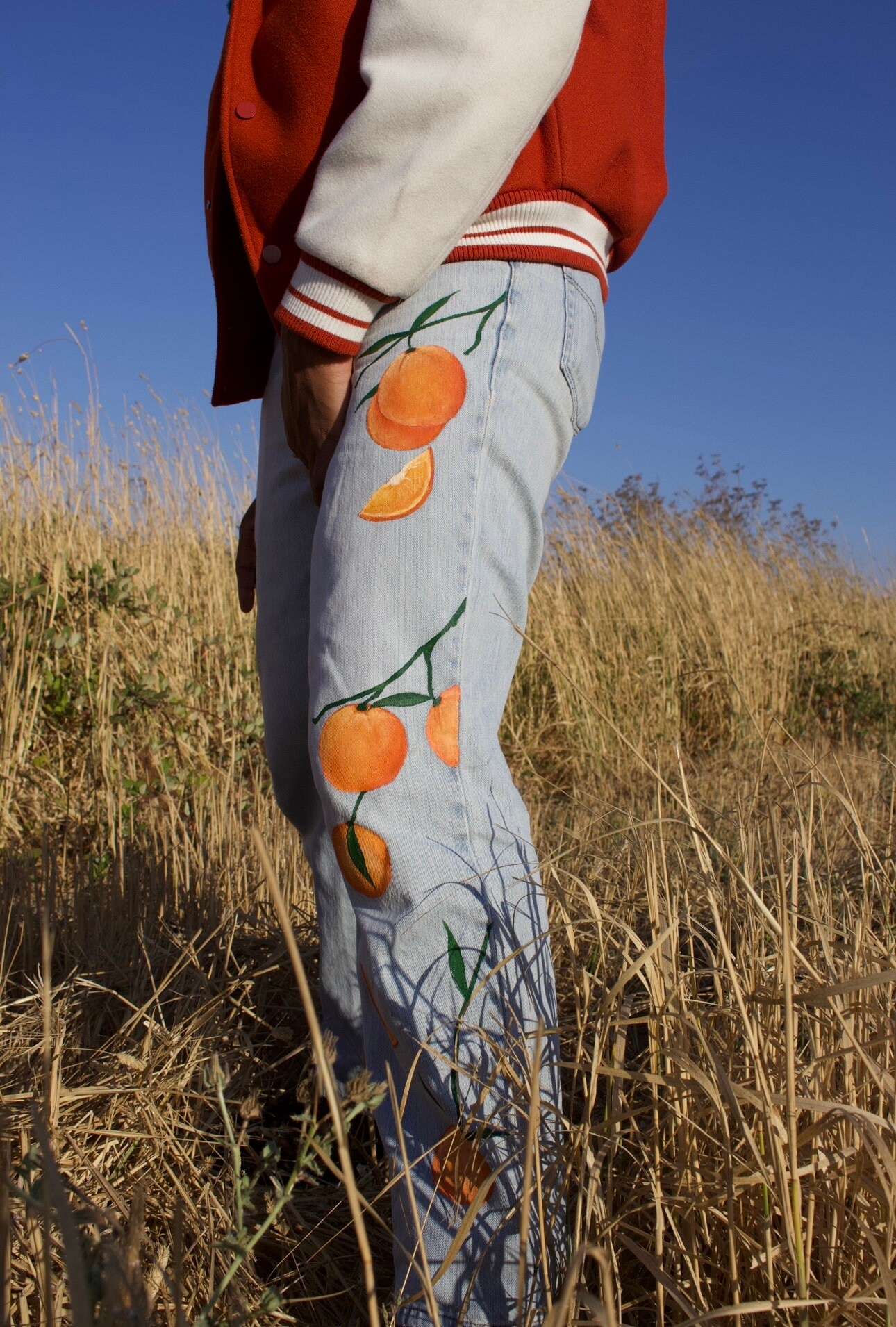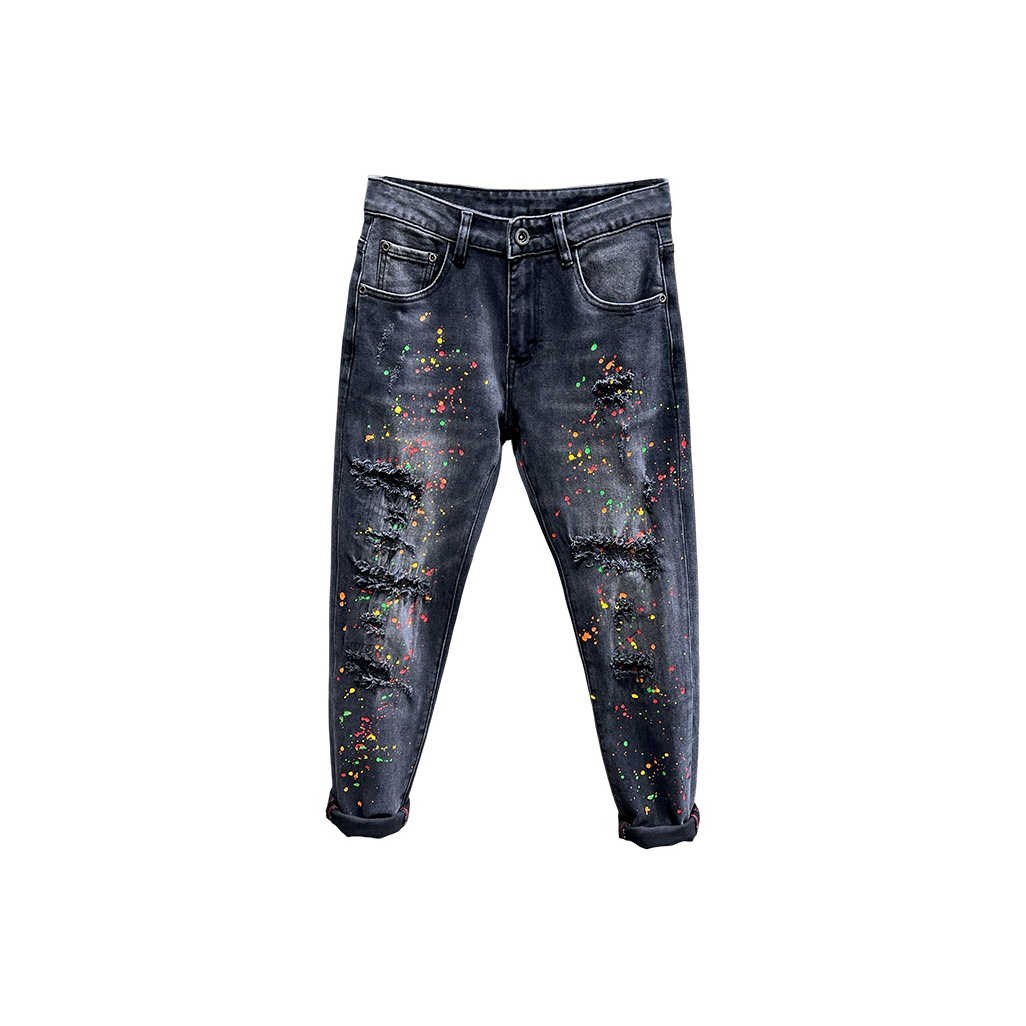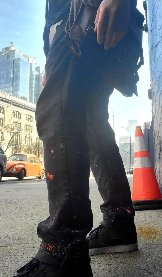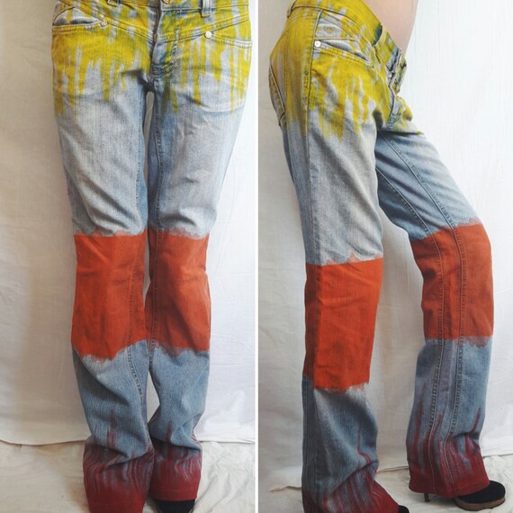 orange paint splatter jeans