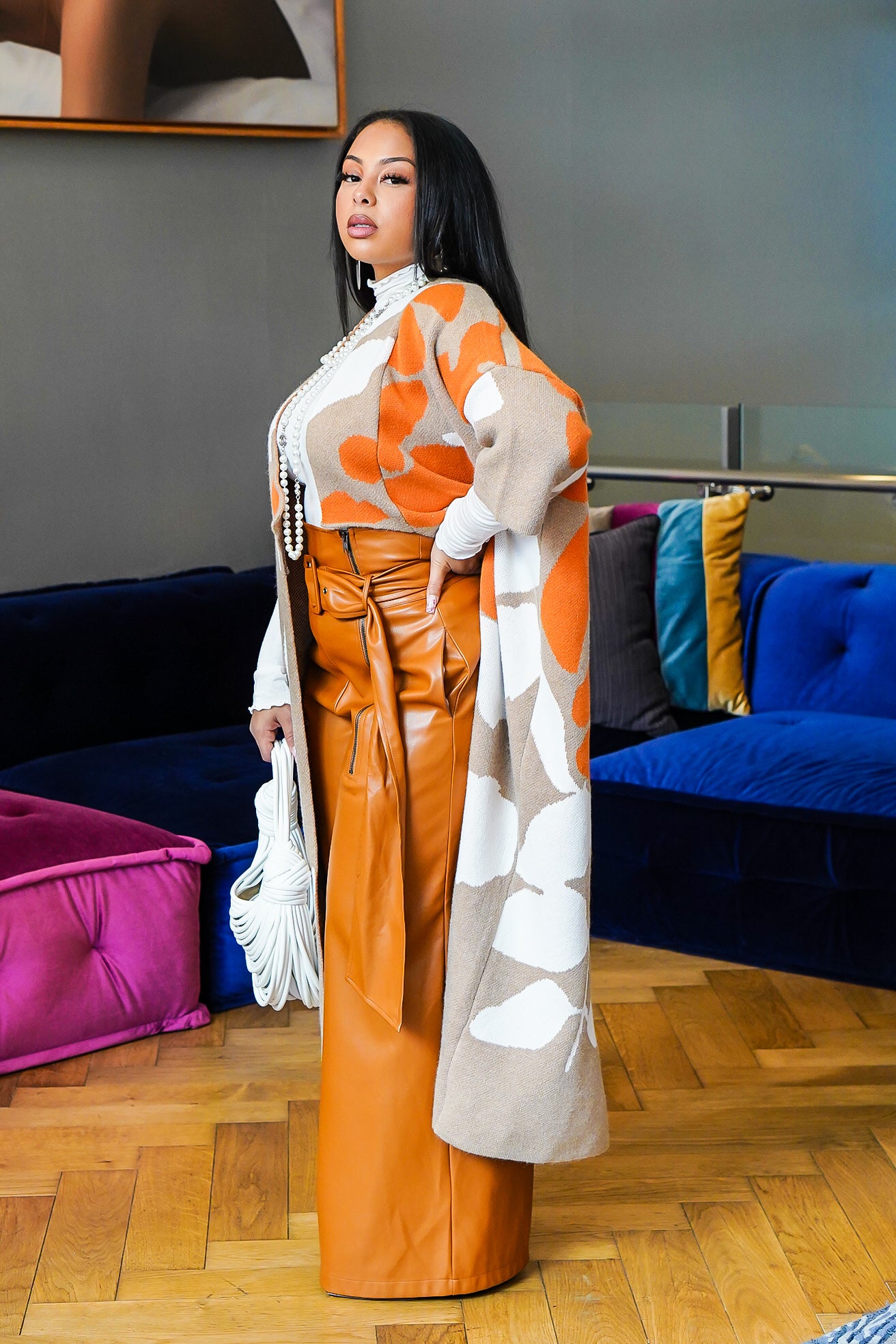 orange pleather pants