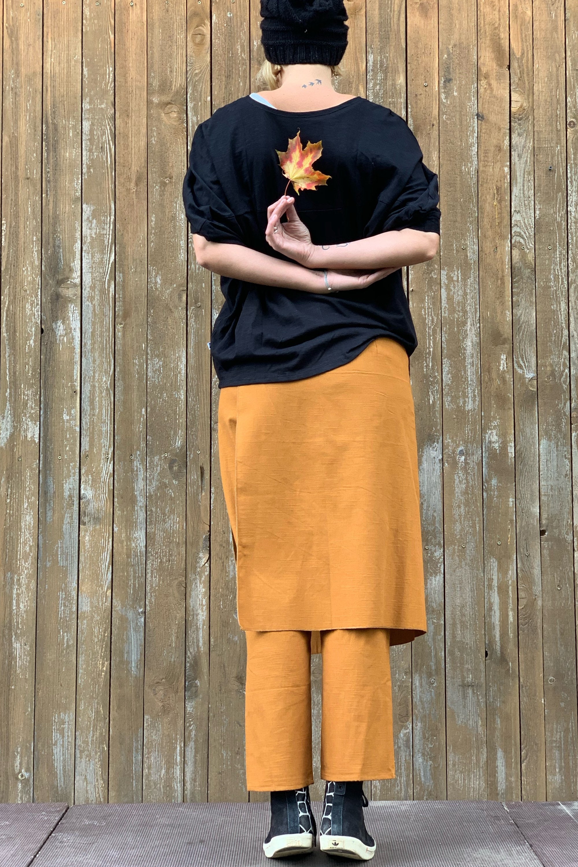pants with skirt overlay pattern