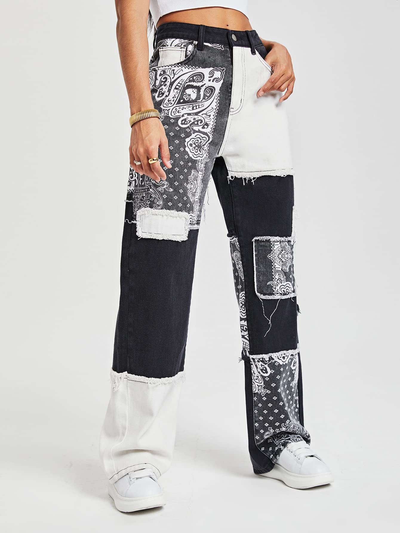 patchwork bandana boyfriend jeans