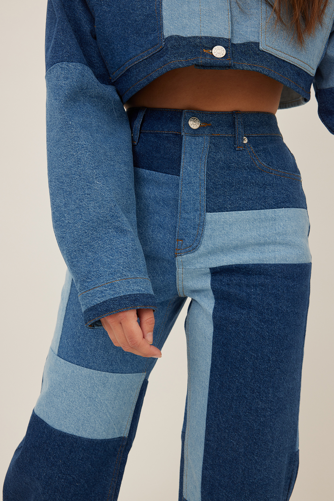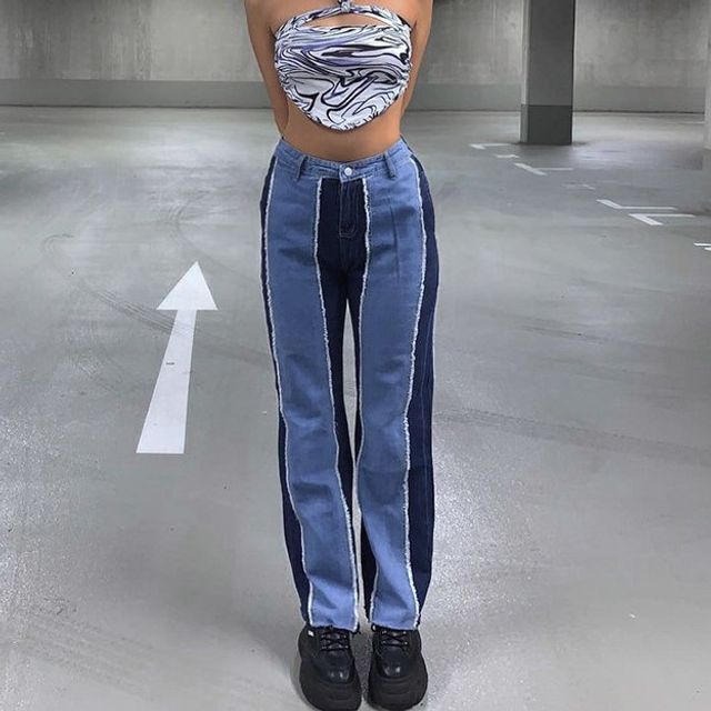 patchwork high waisted jeans
