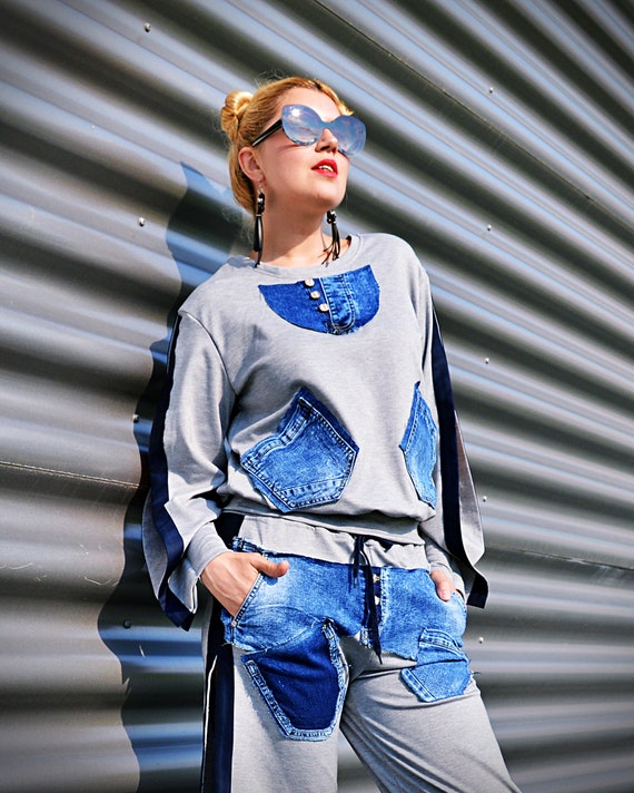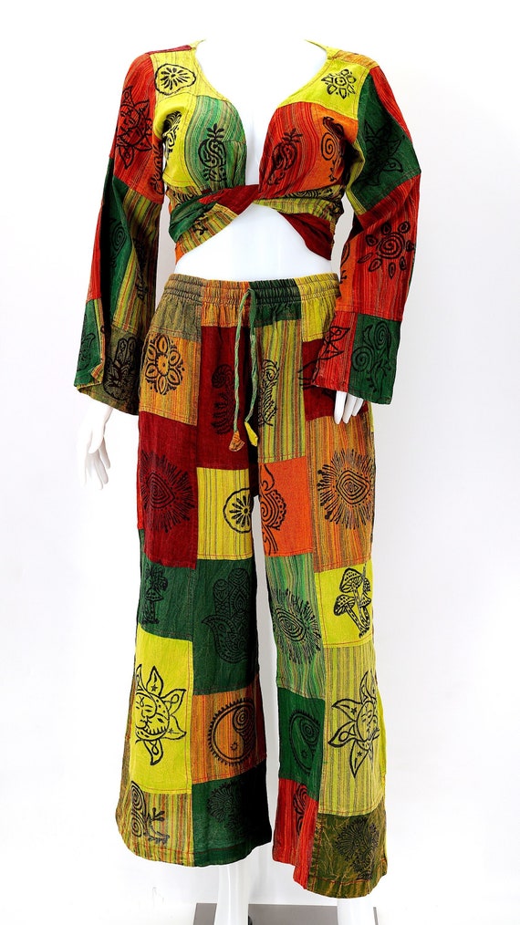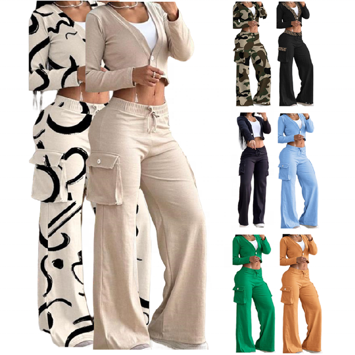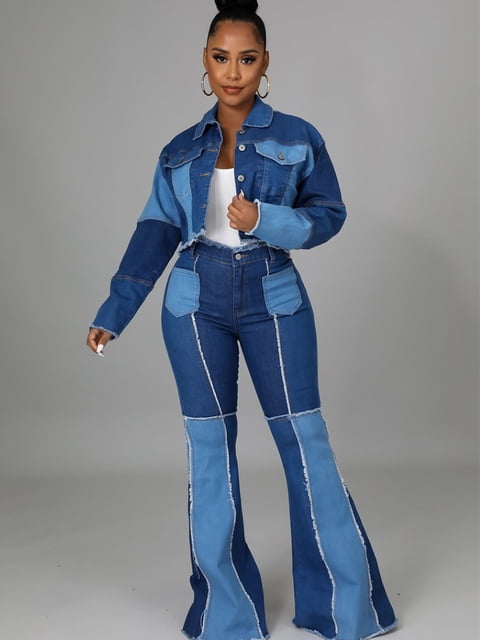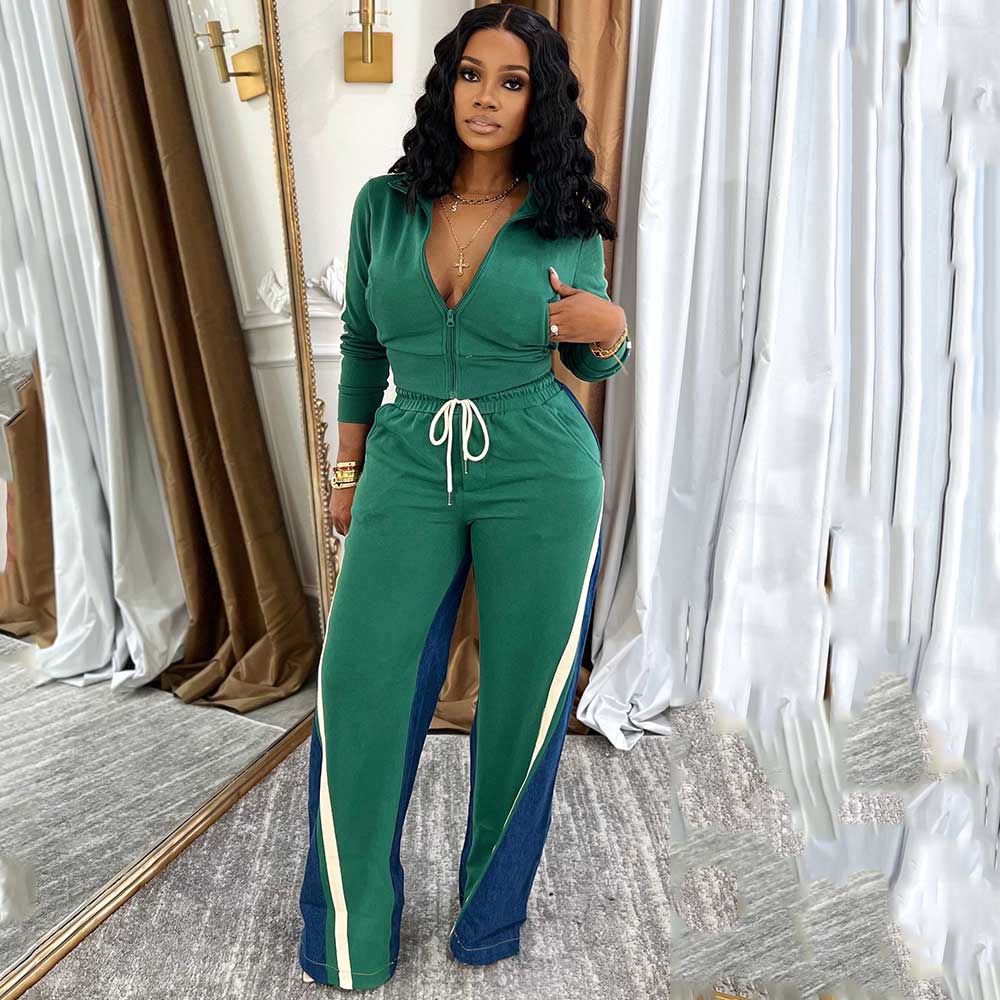 patchwork pants two piece outfits
