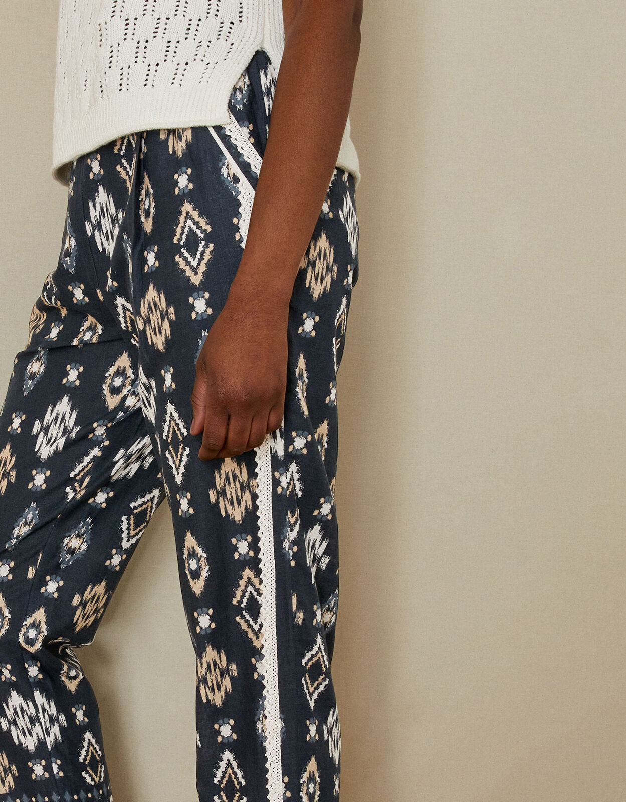 patterned pull on trousers