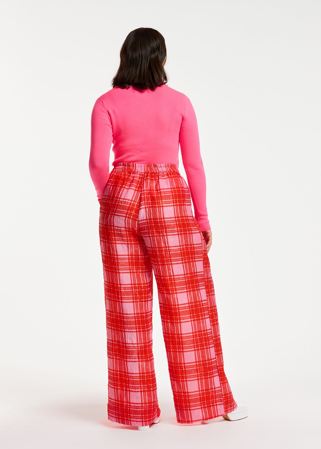pink and red checkered pants
