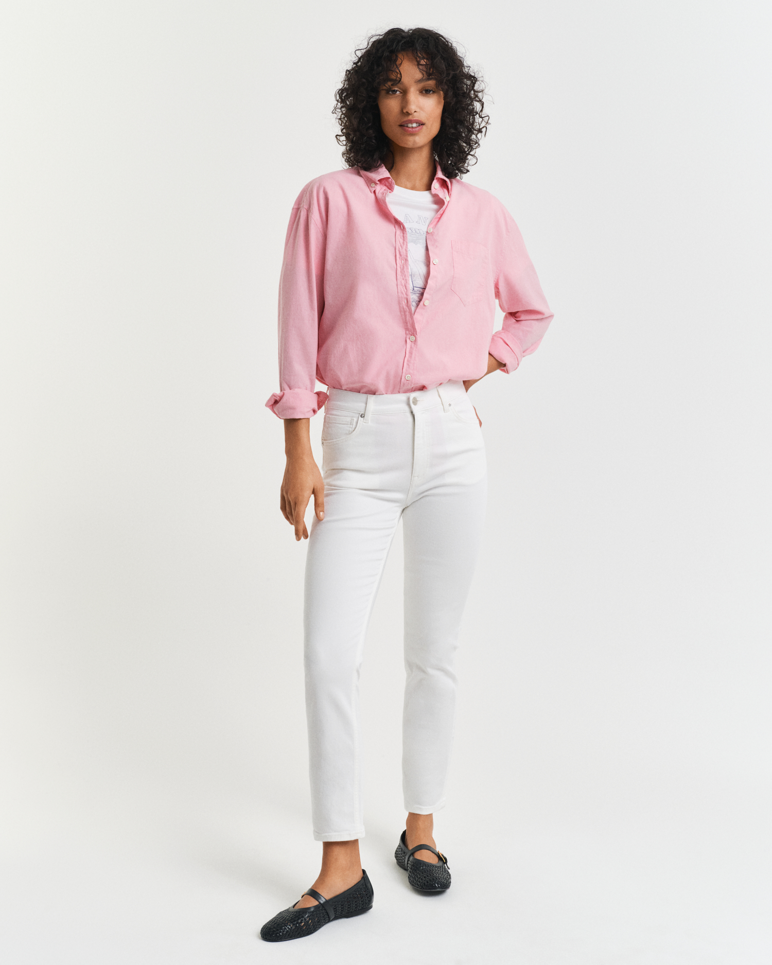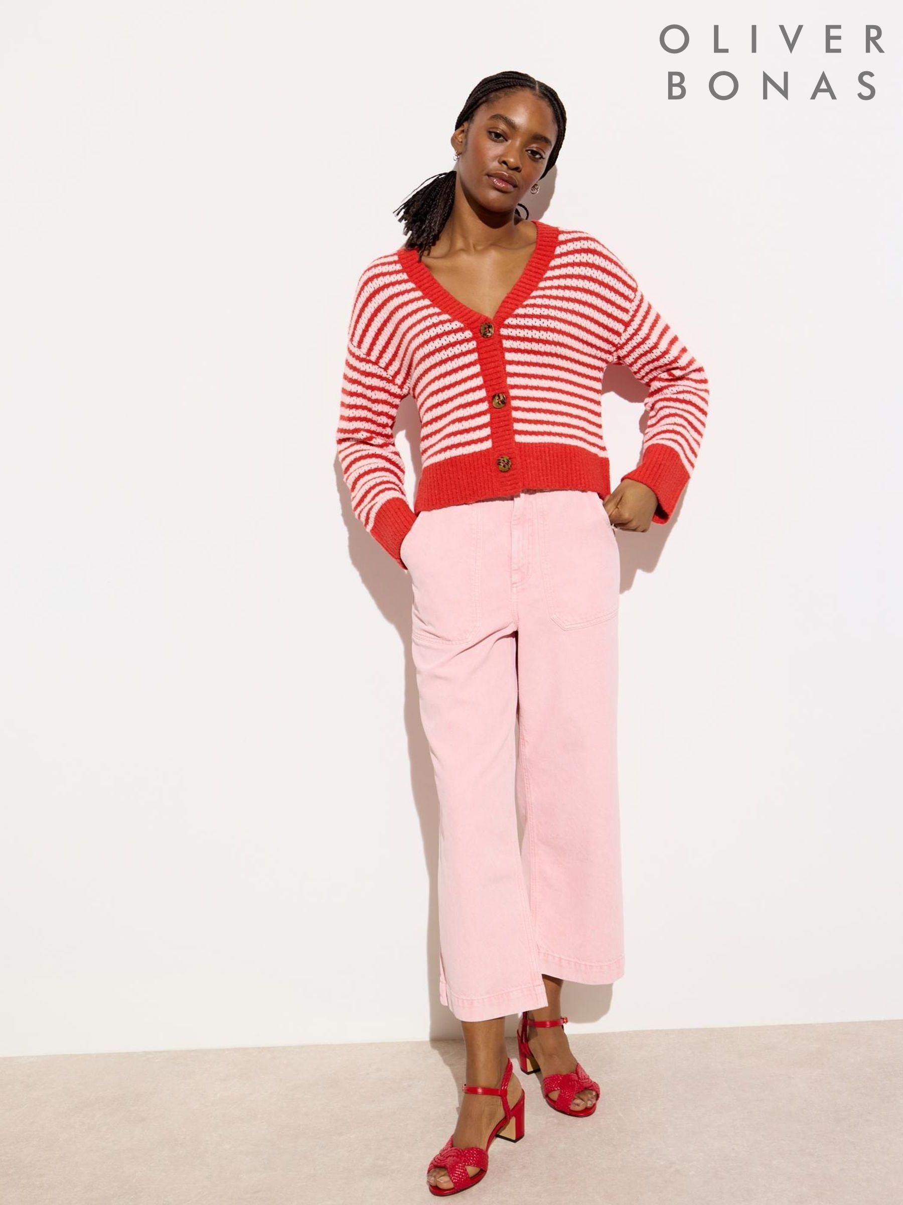 pink and white jeans