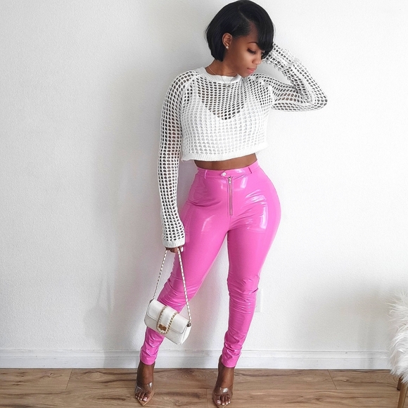 pink latex pants