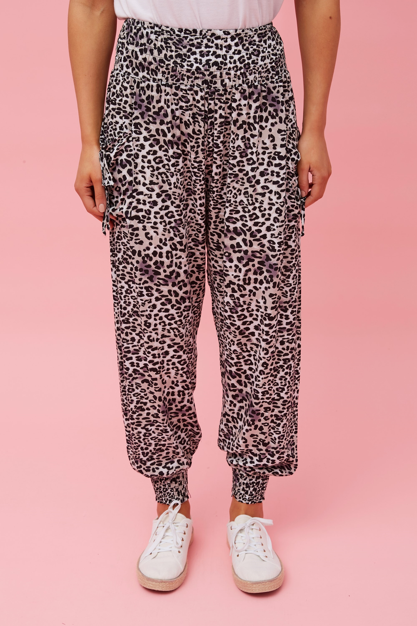 pink leopard pants