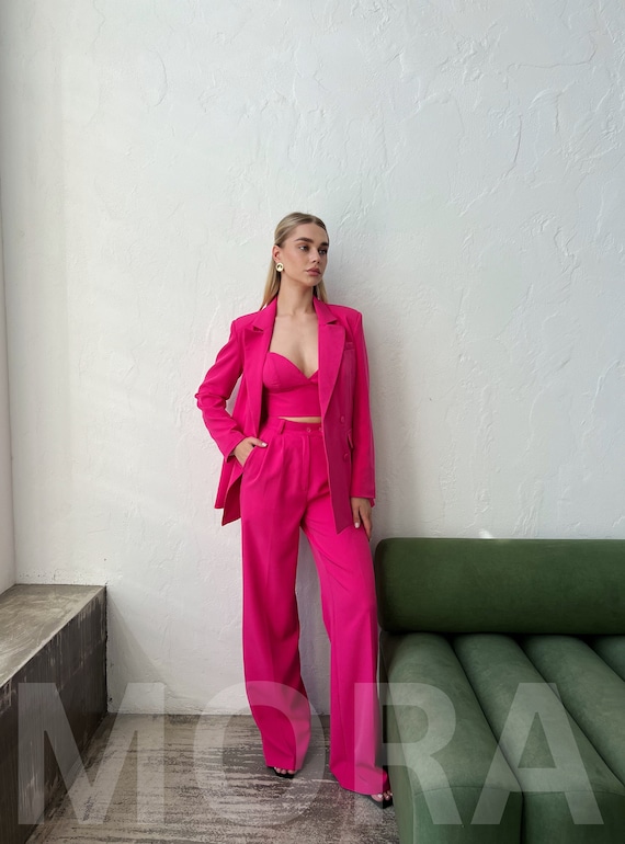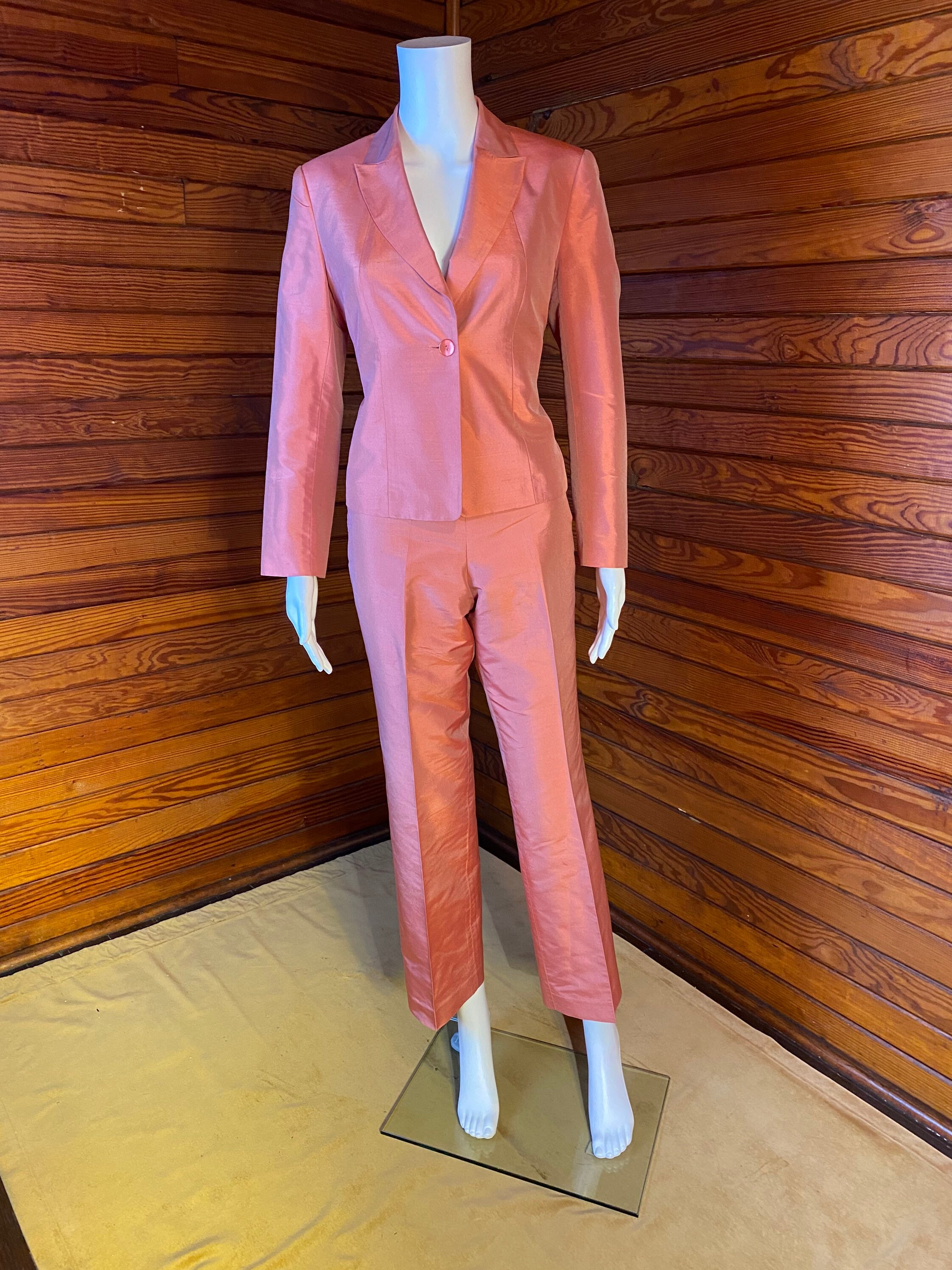 pink silk pant suit