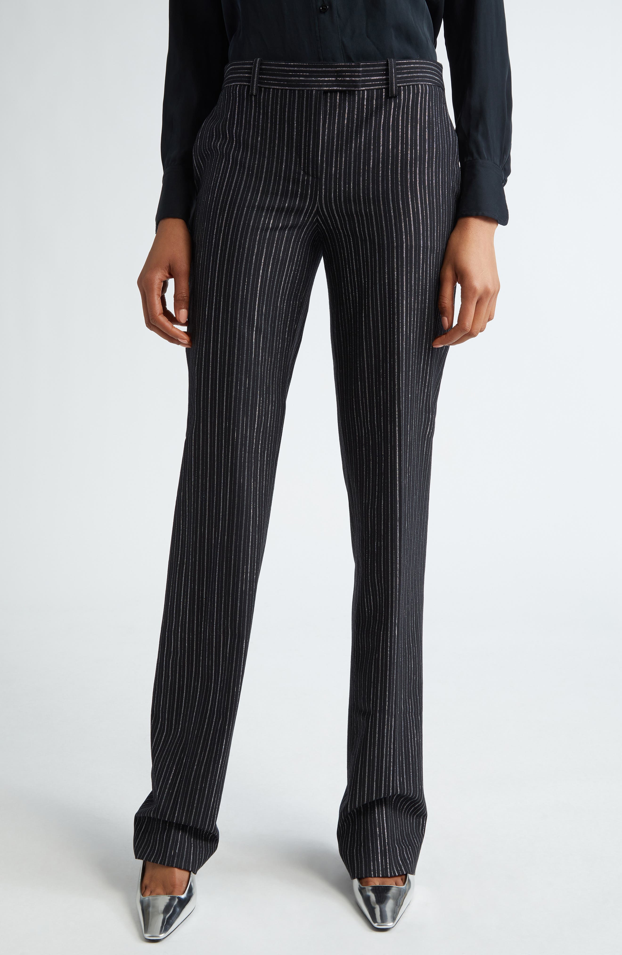 pinstripe bootcut trousers
