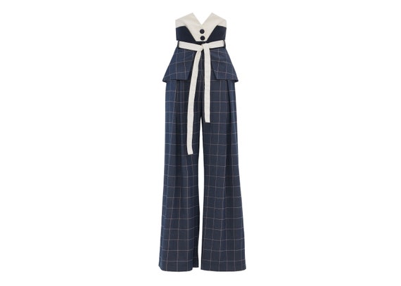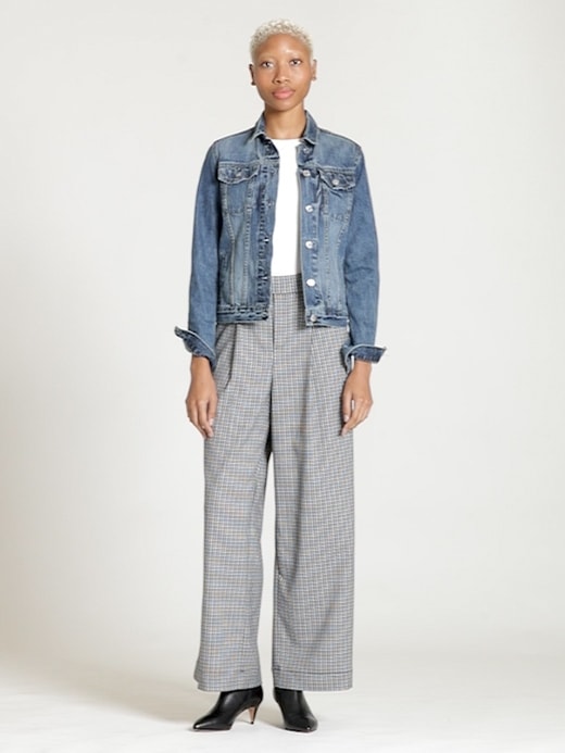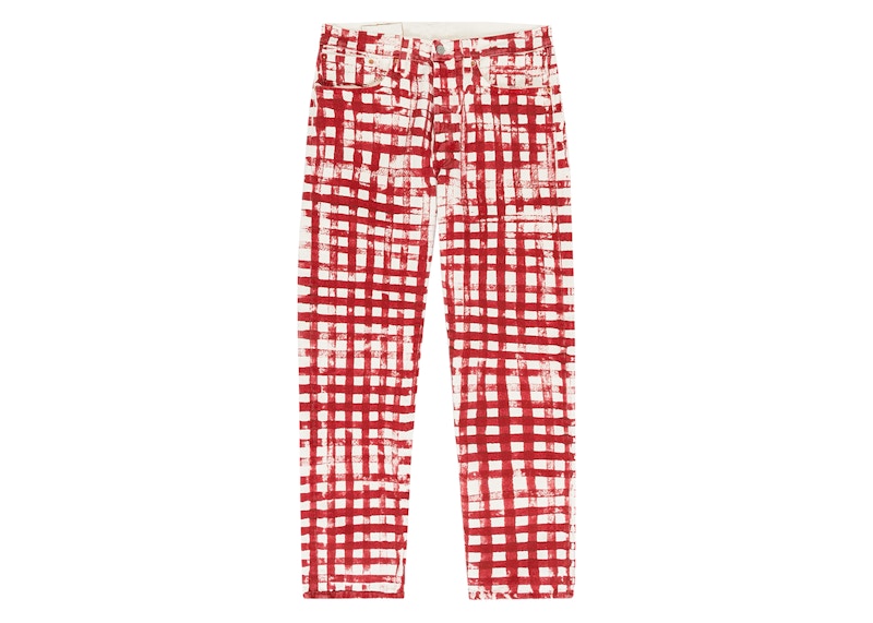 plaid denim pants
