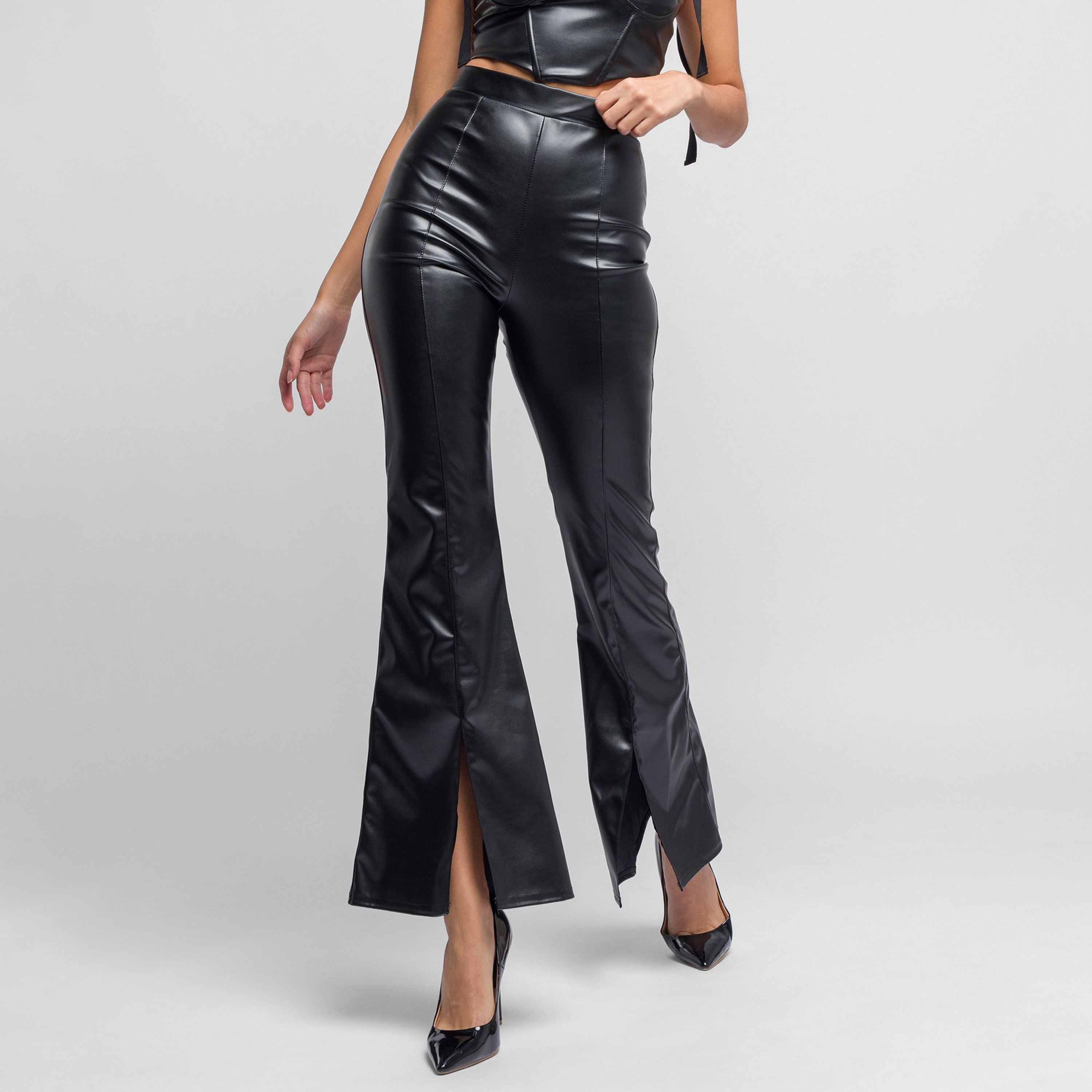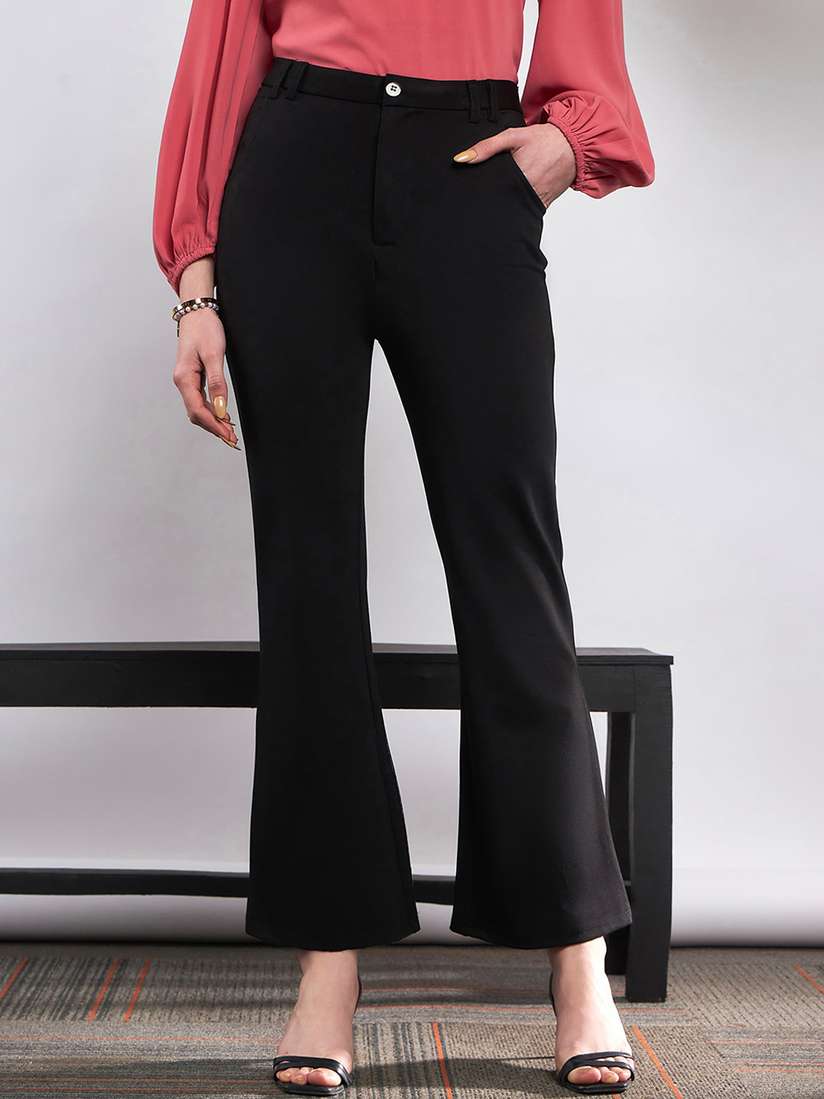 plain black flared trousers