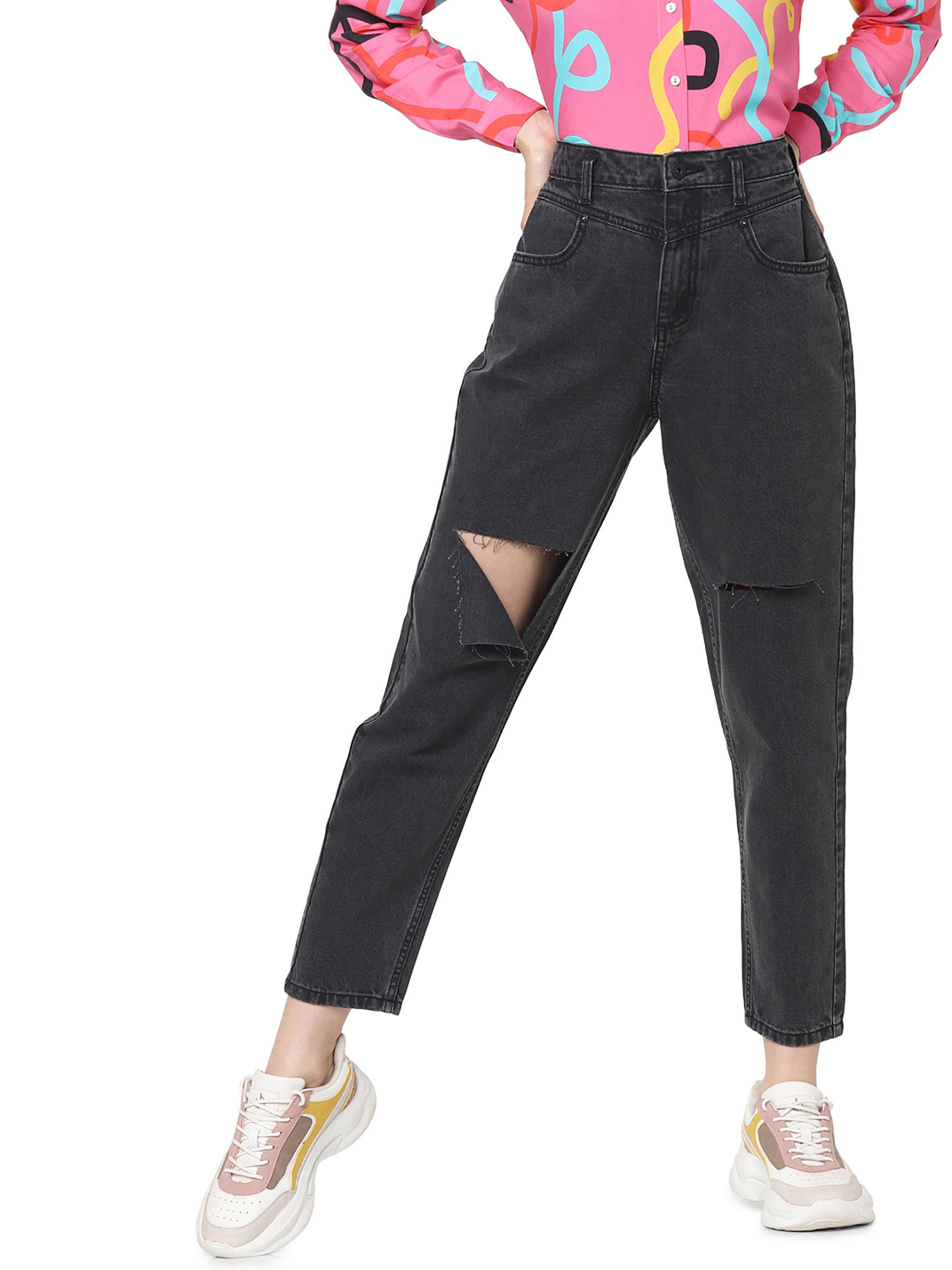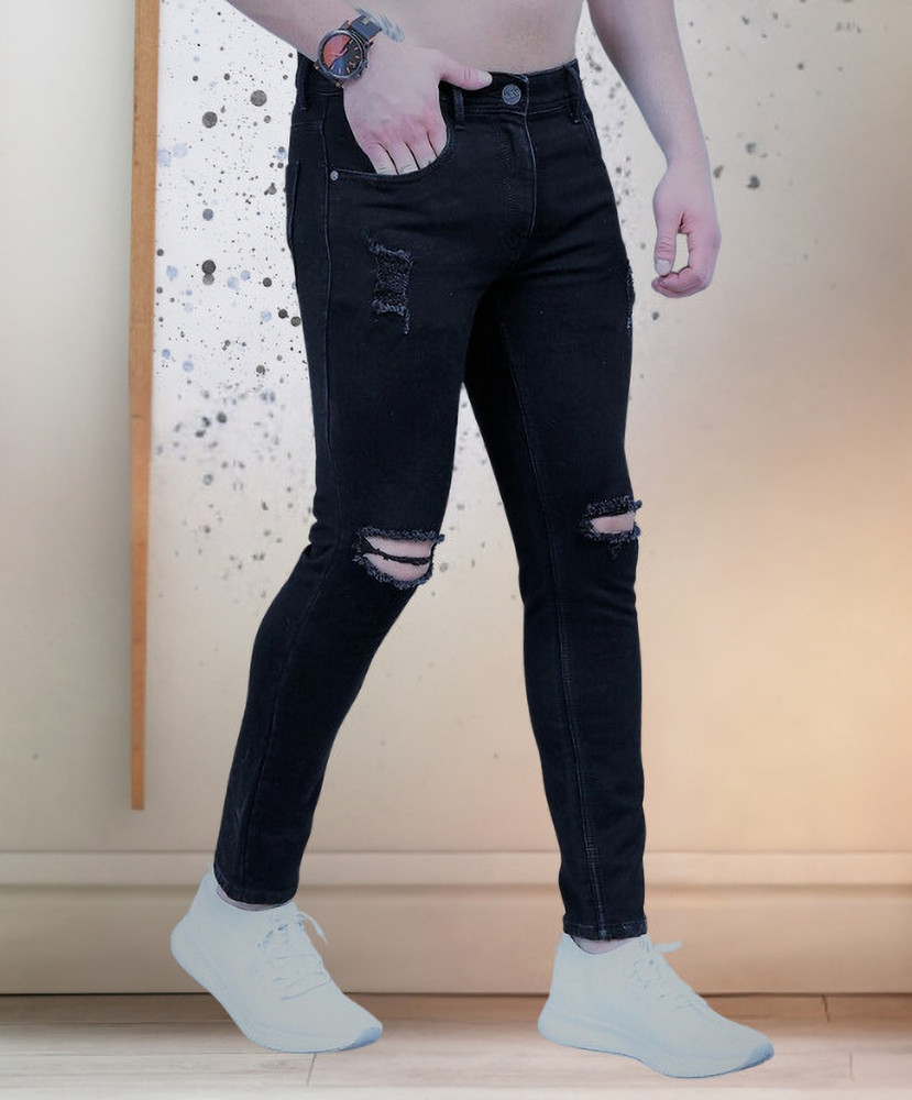 plain black ripped jeans