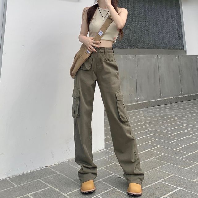 plain pockets design cargo pants
