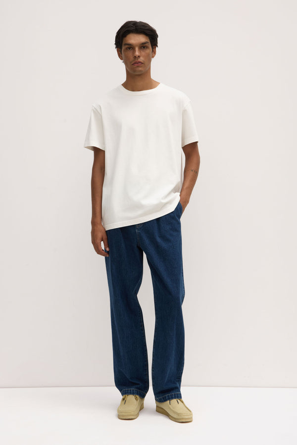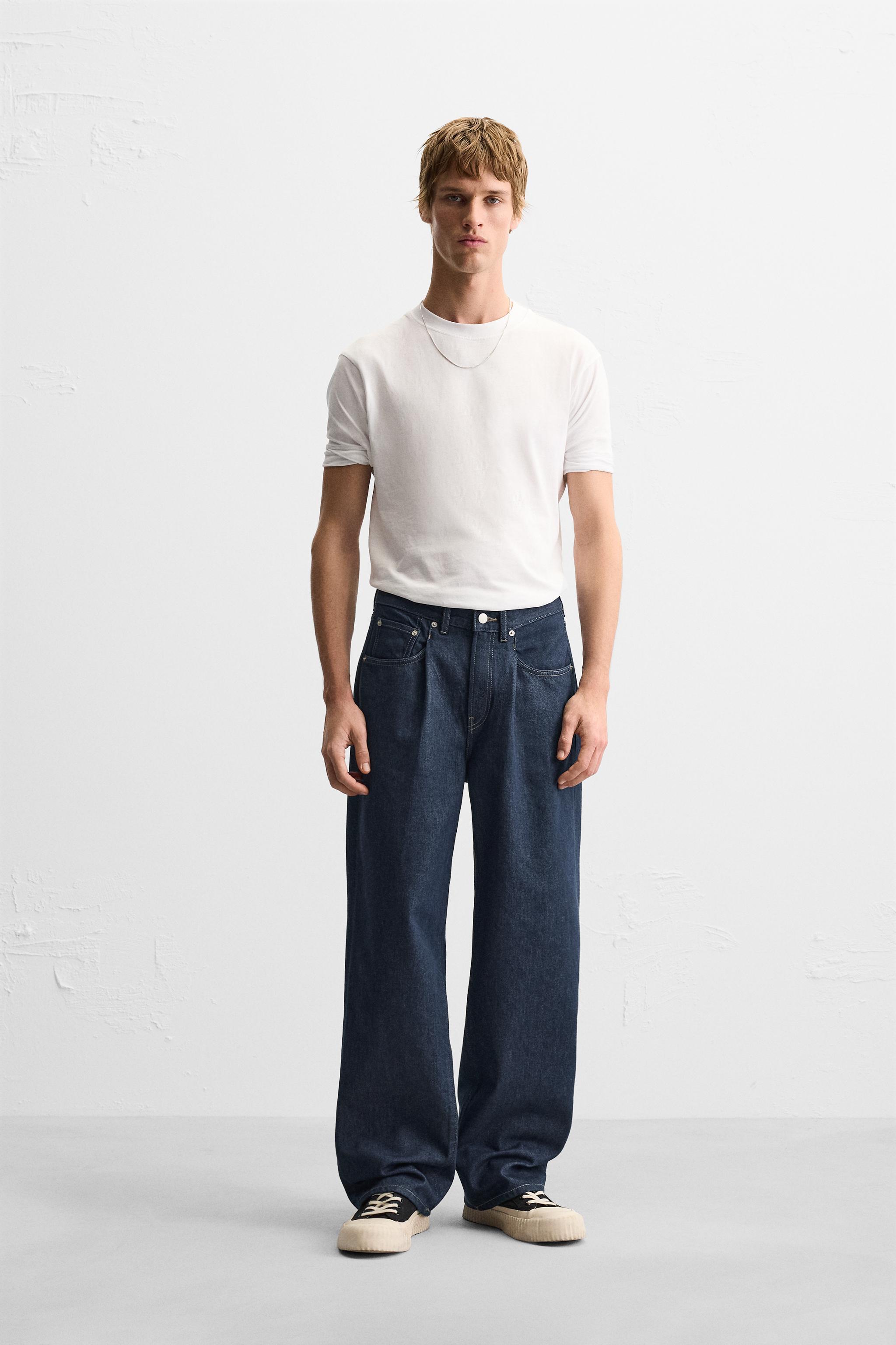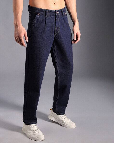 pleated blue jeans