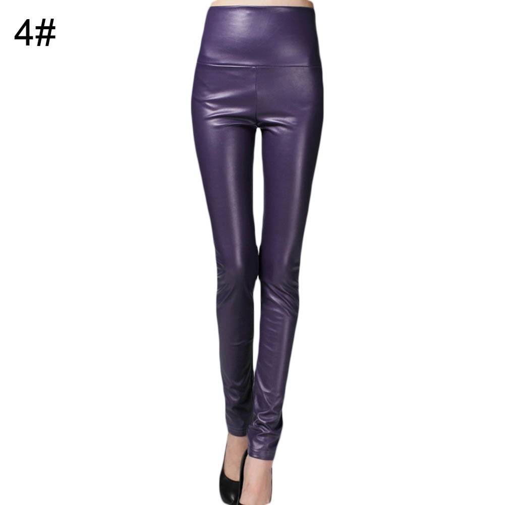 plum leather leggings