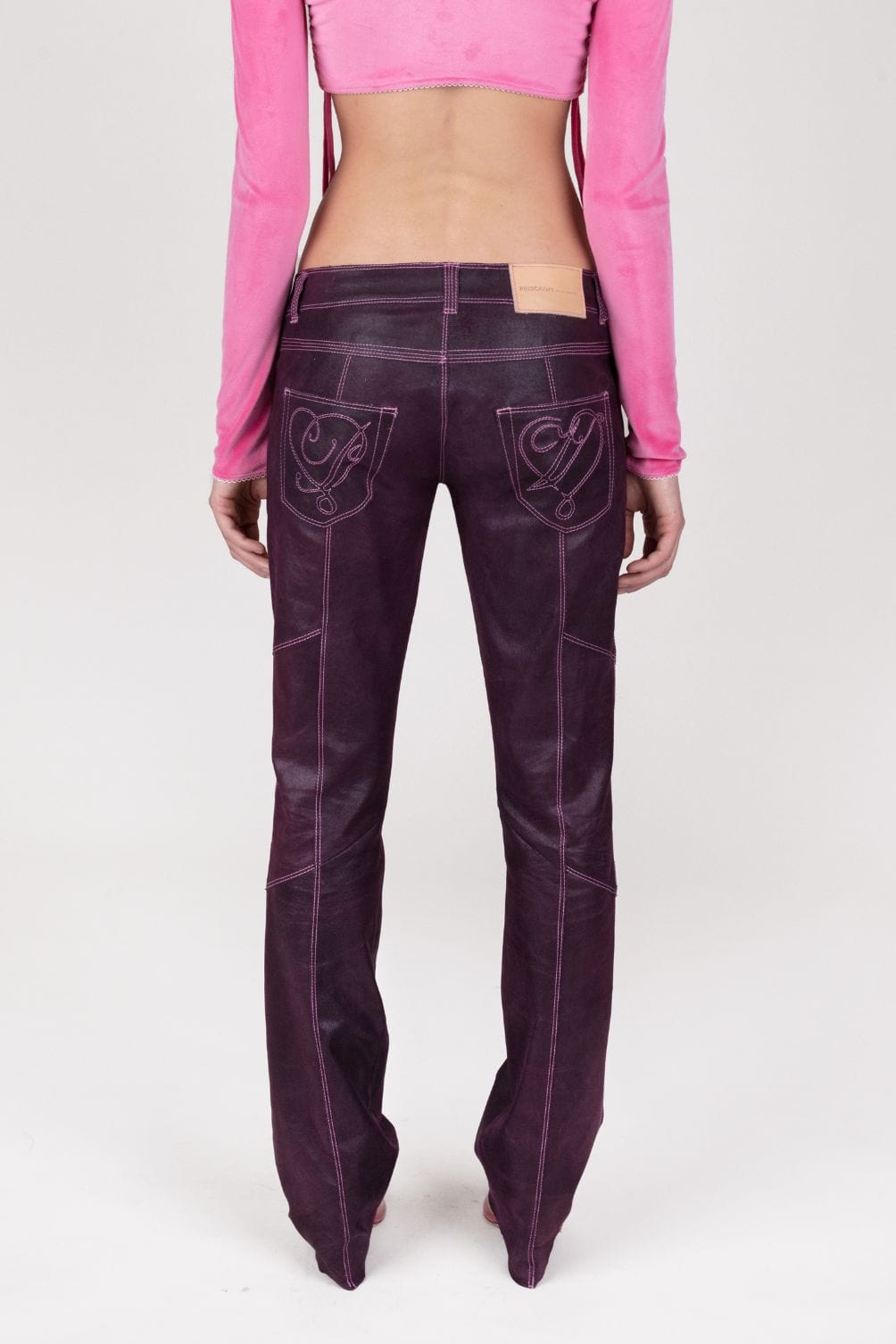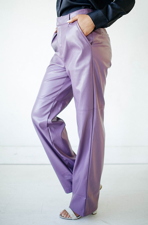 plum leather pants
