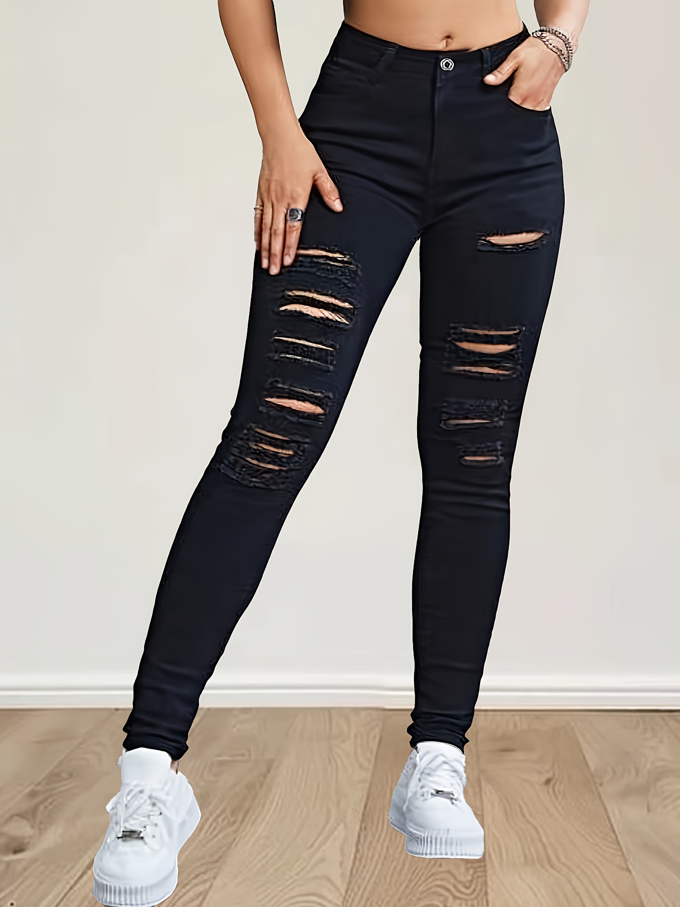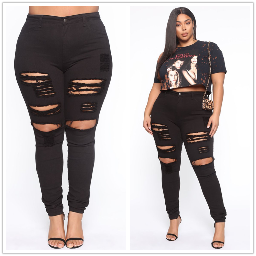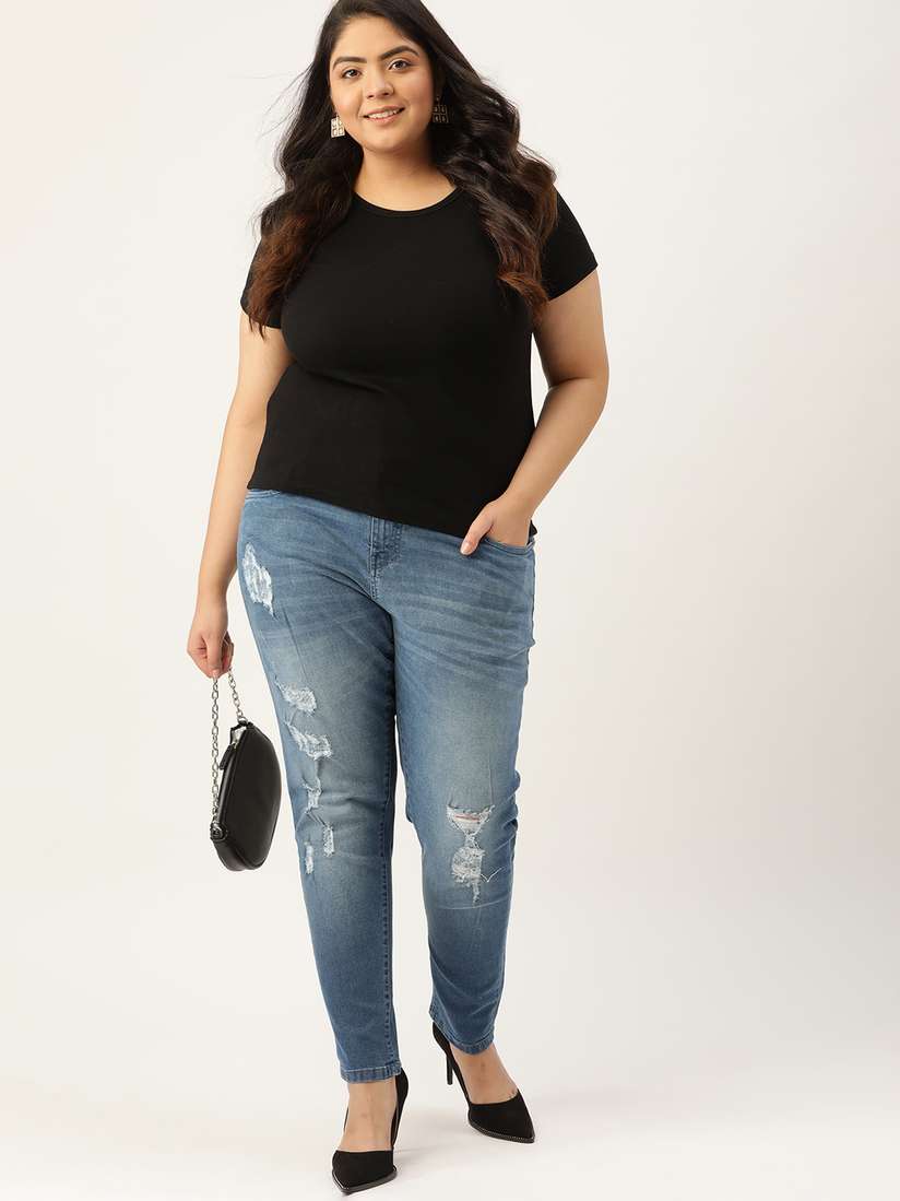plus size black distressed jeans
