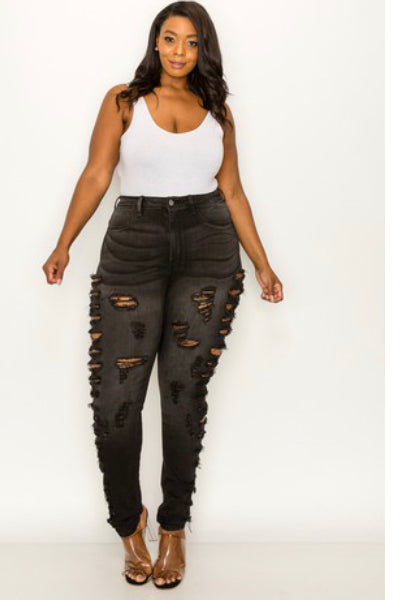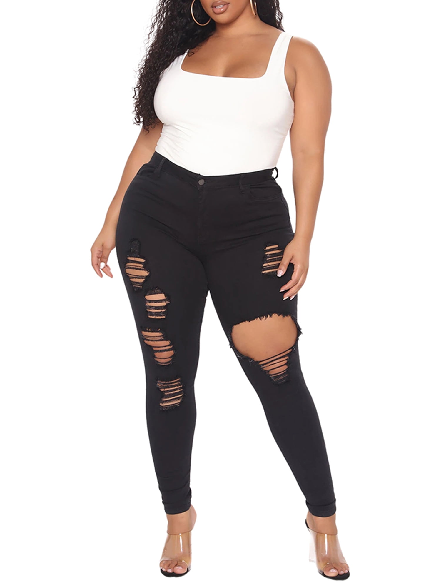 plus size black ripped jeans