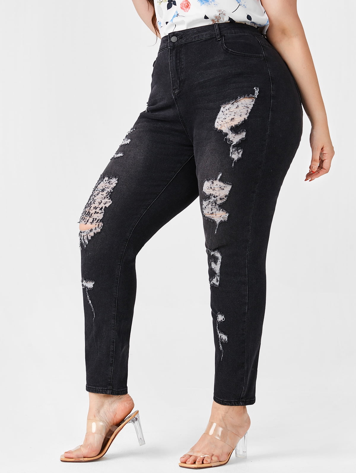 plus size distressed black jeggings