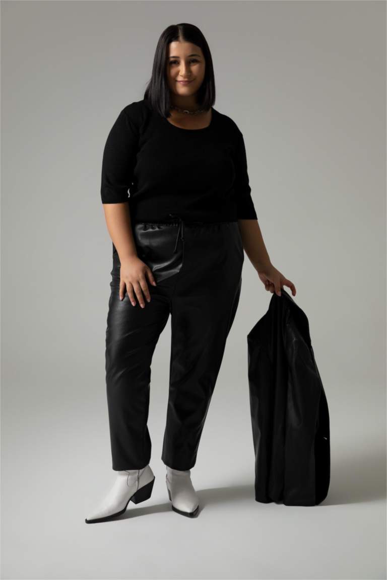 plus size faux leather trousers