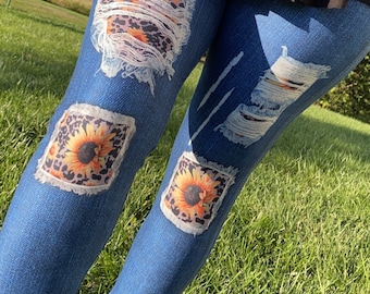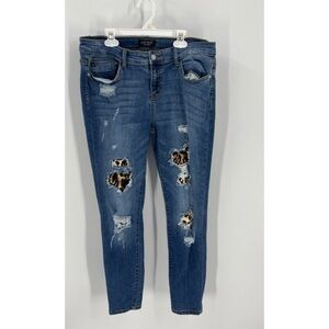 plus size leopard patch jeans