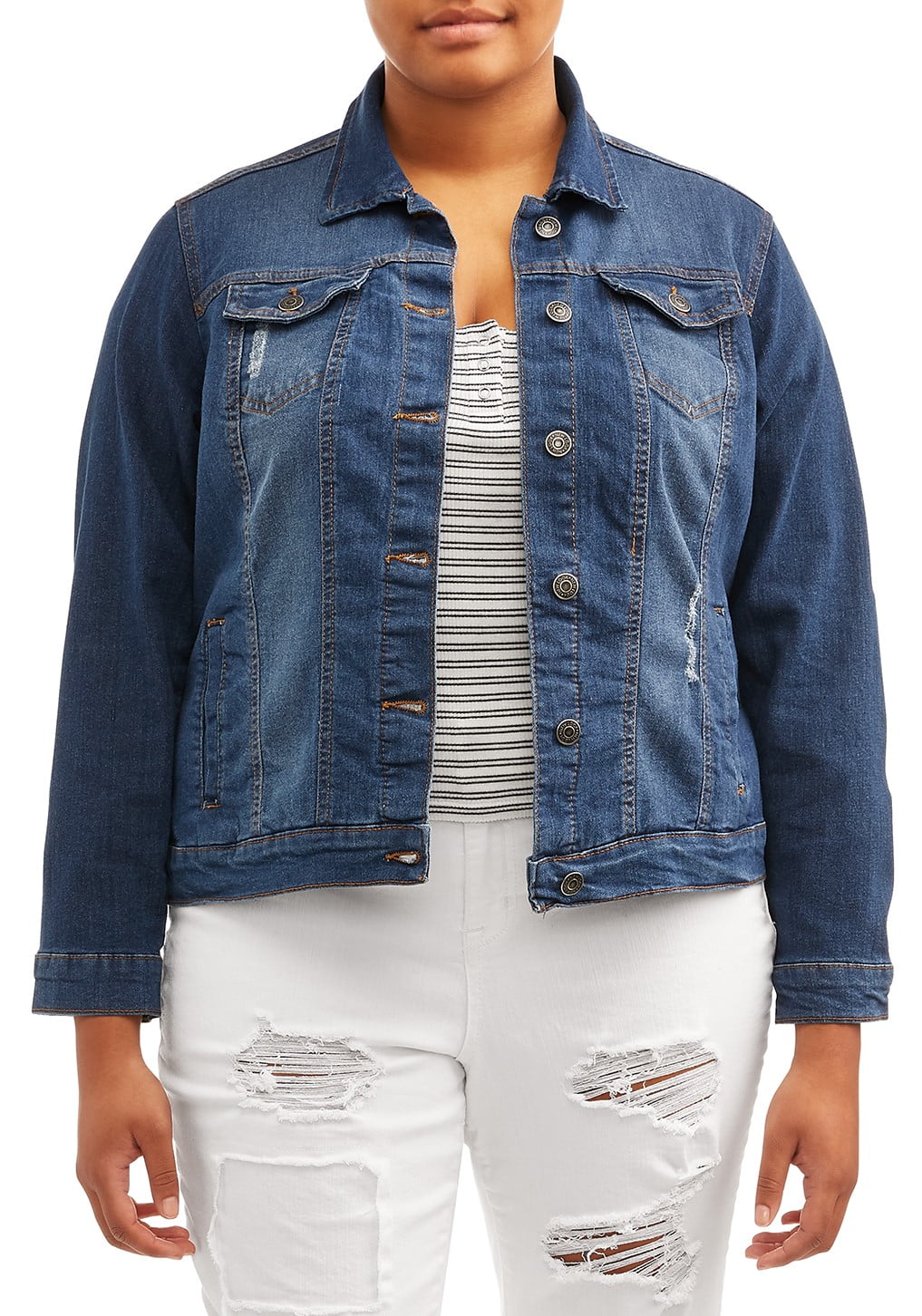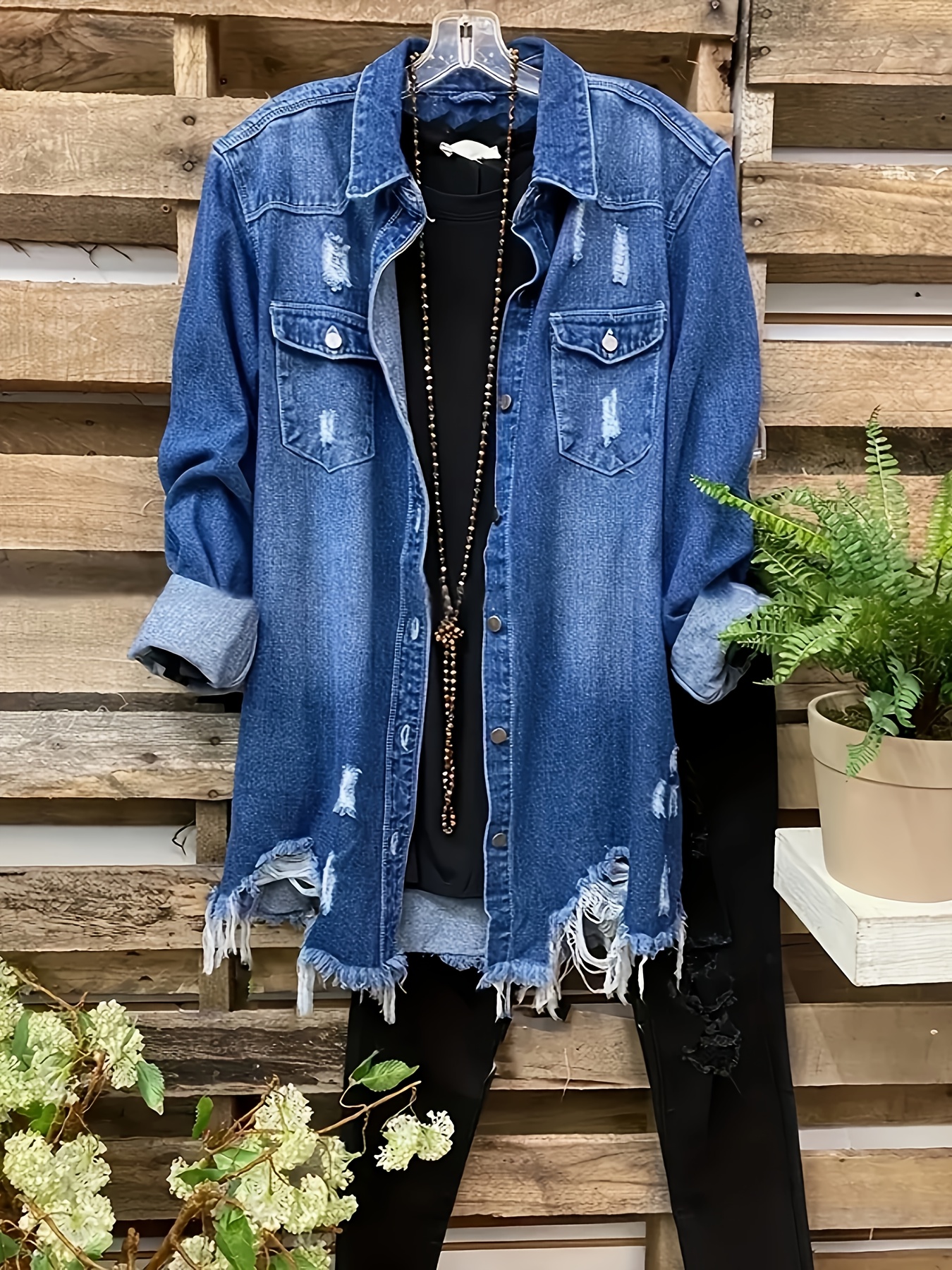 plus size long distressed denim jacket
