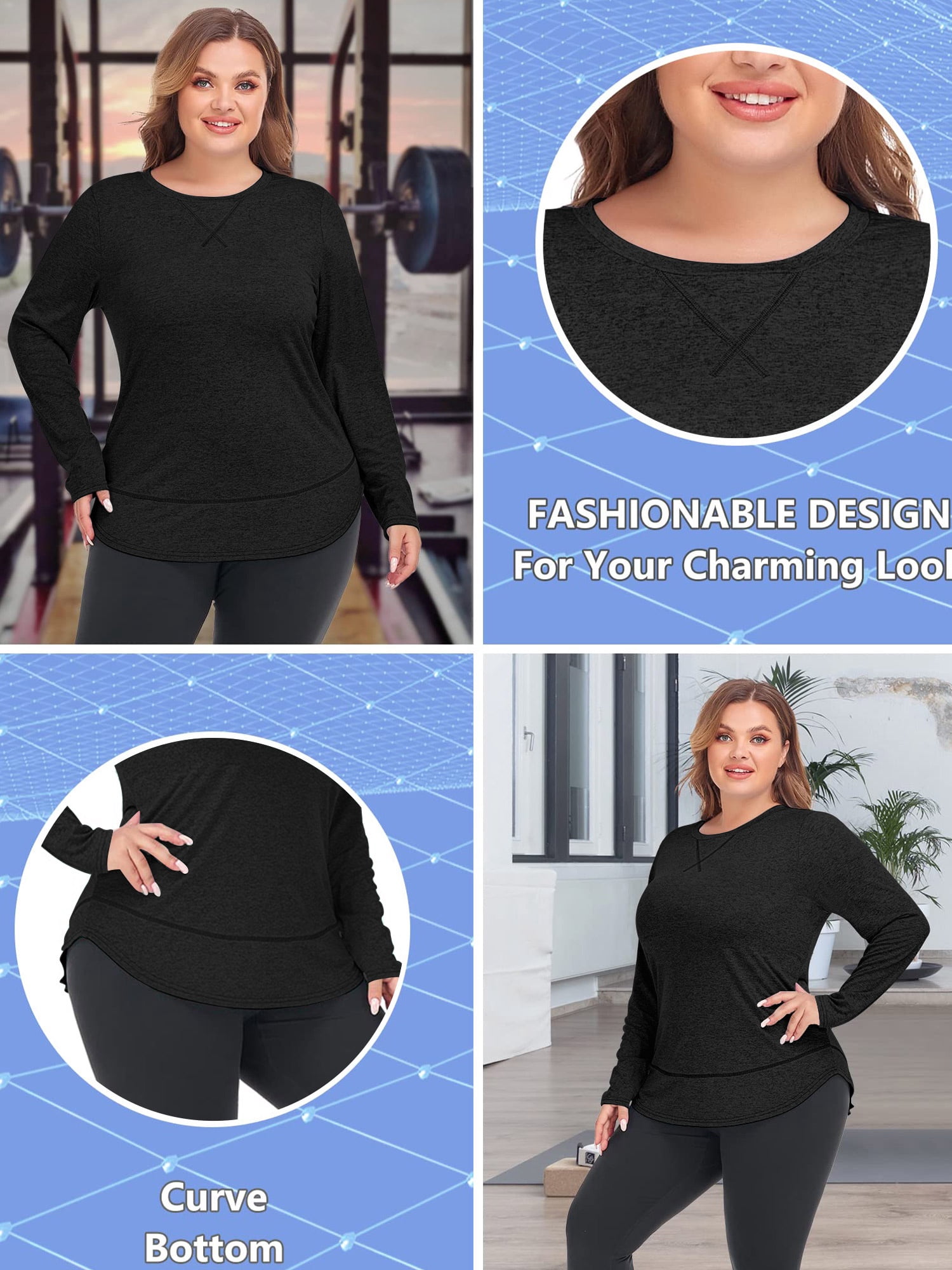 plus size long sleeve workout tops