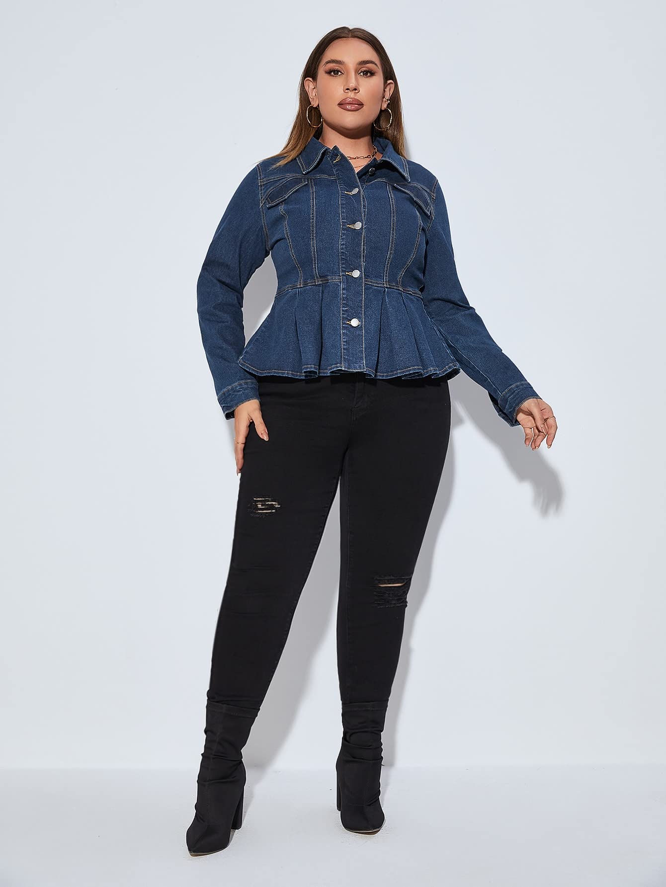 plus size peplum jean jacket