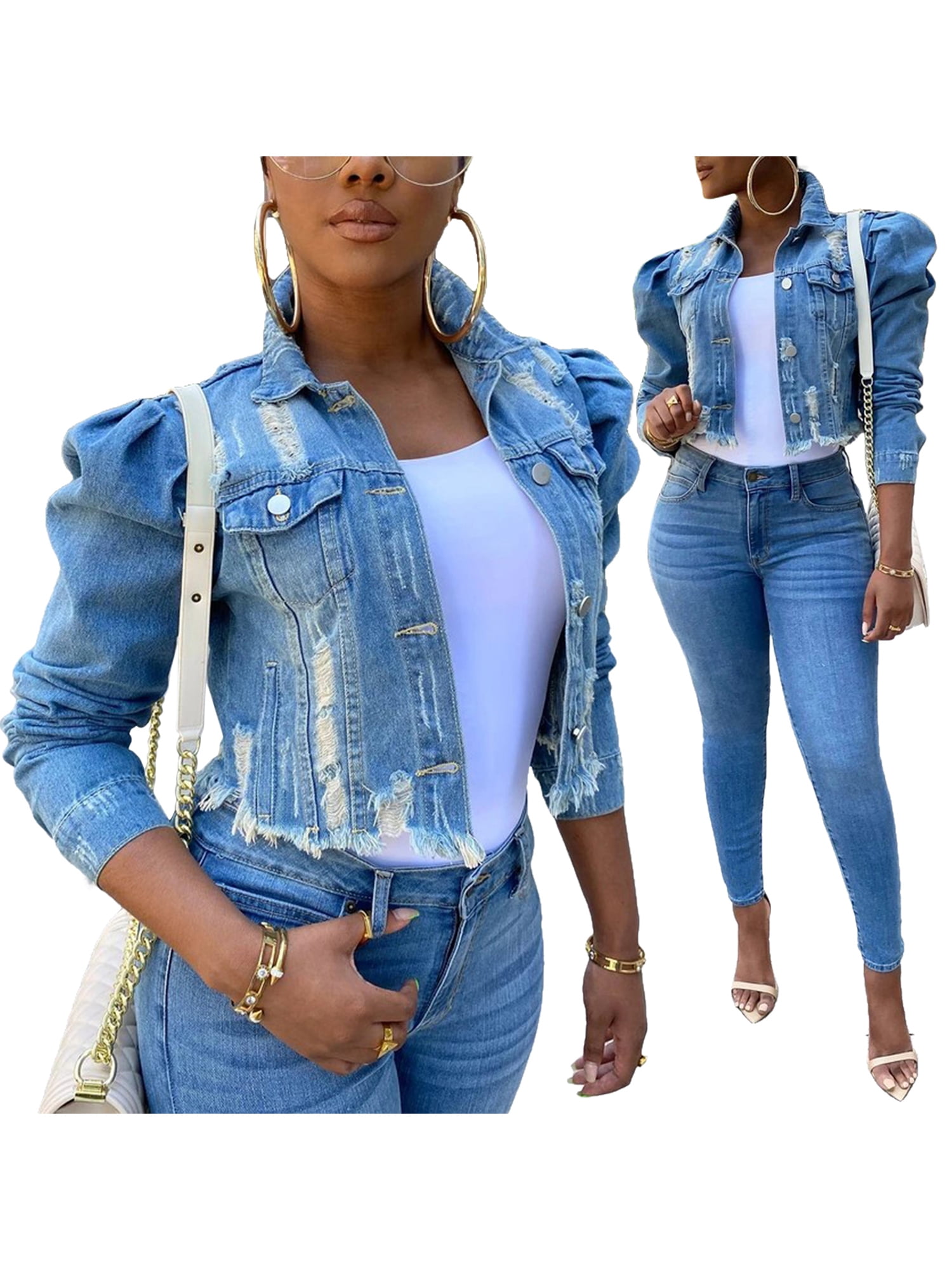 plus size ripped denim jacket
