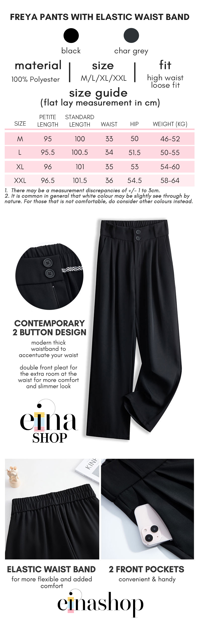 polyester elastic waist pants