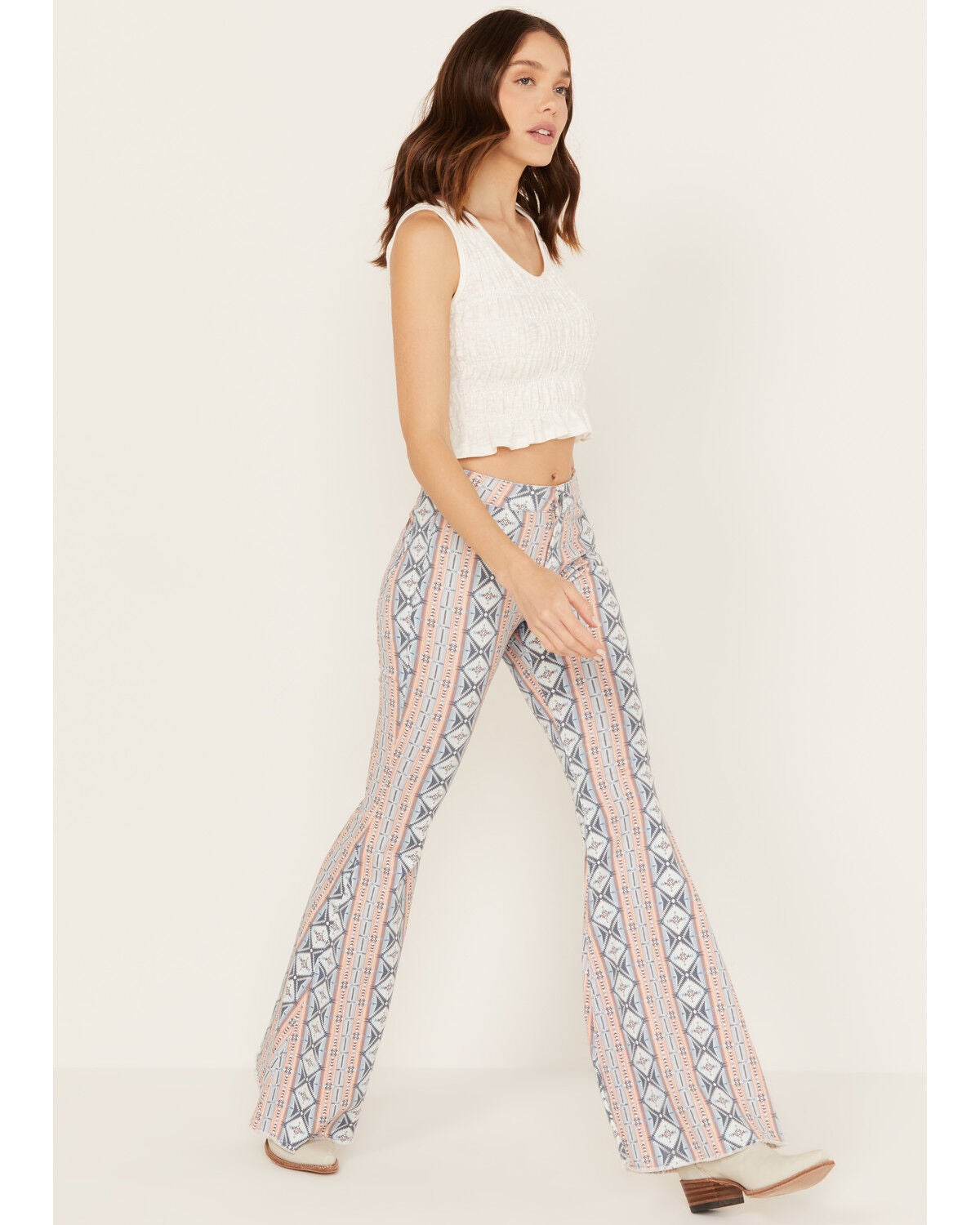 printed bell bottom jeans