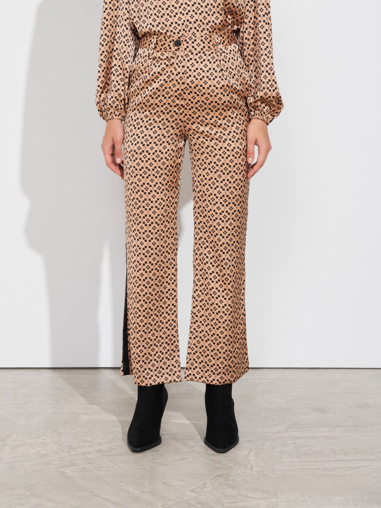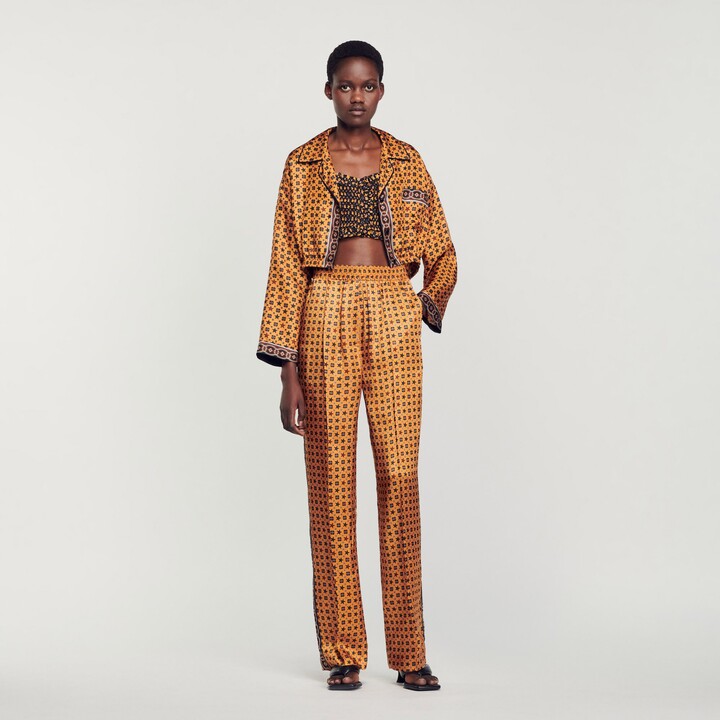 printed satin pants
