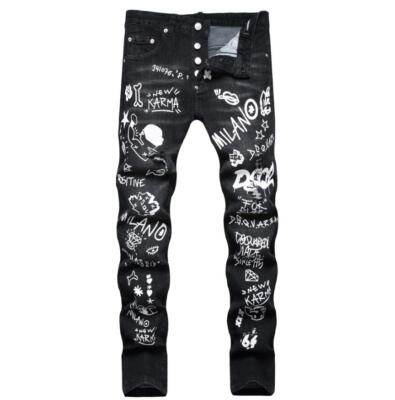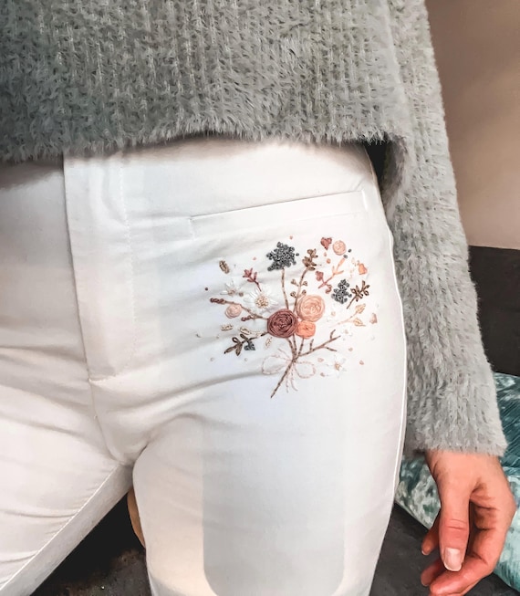 printed white jeans