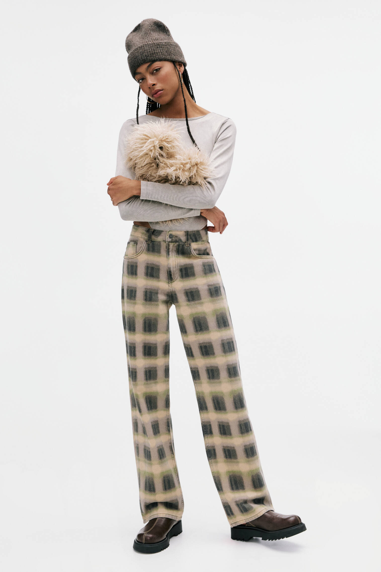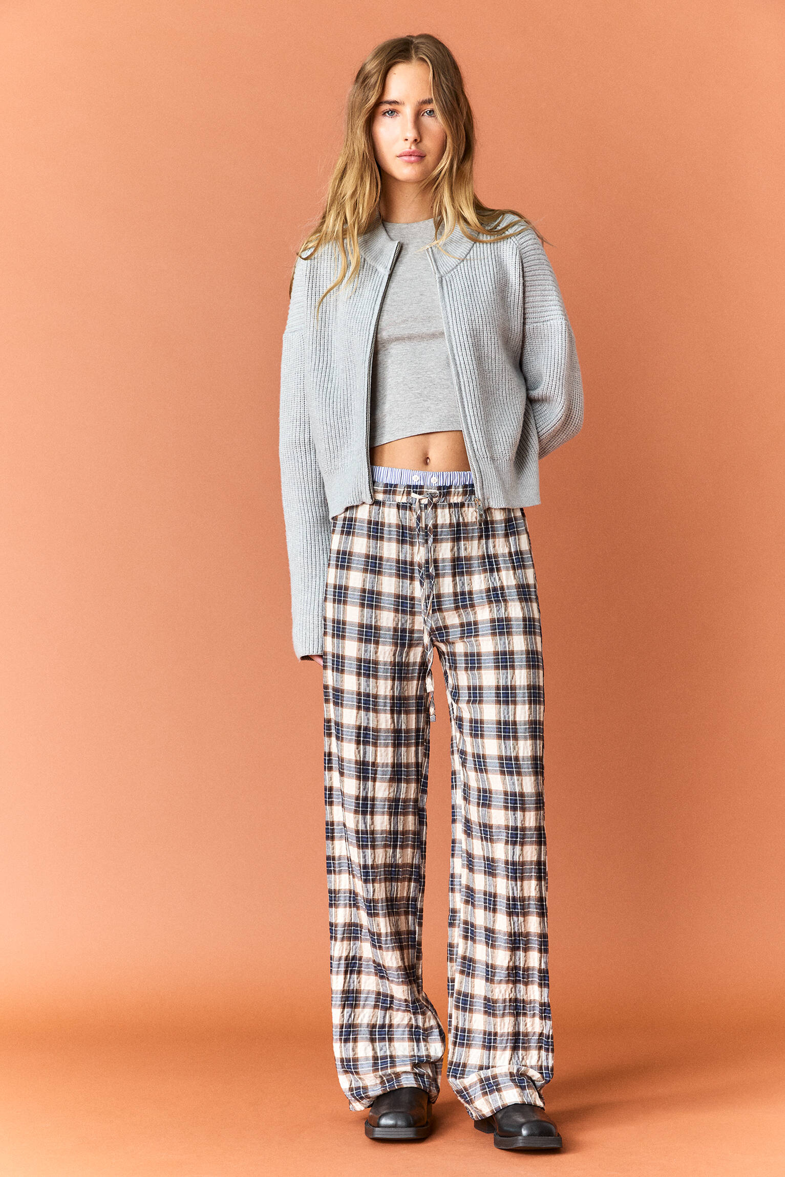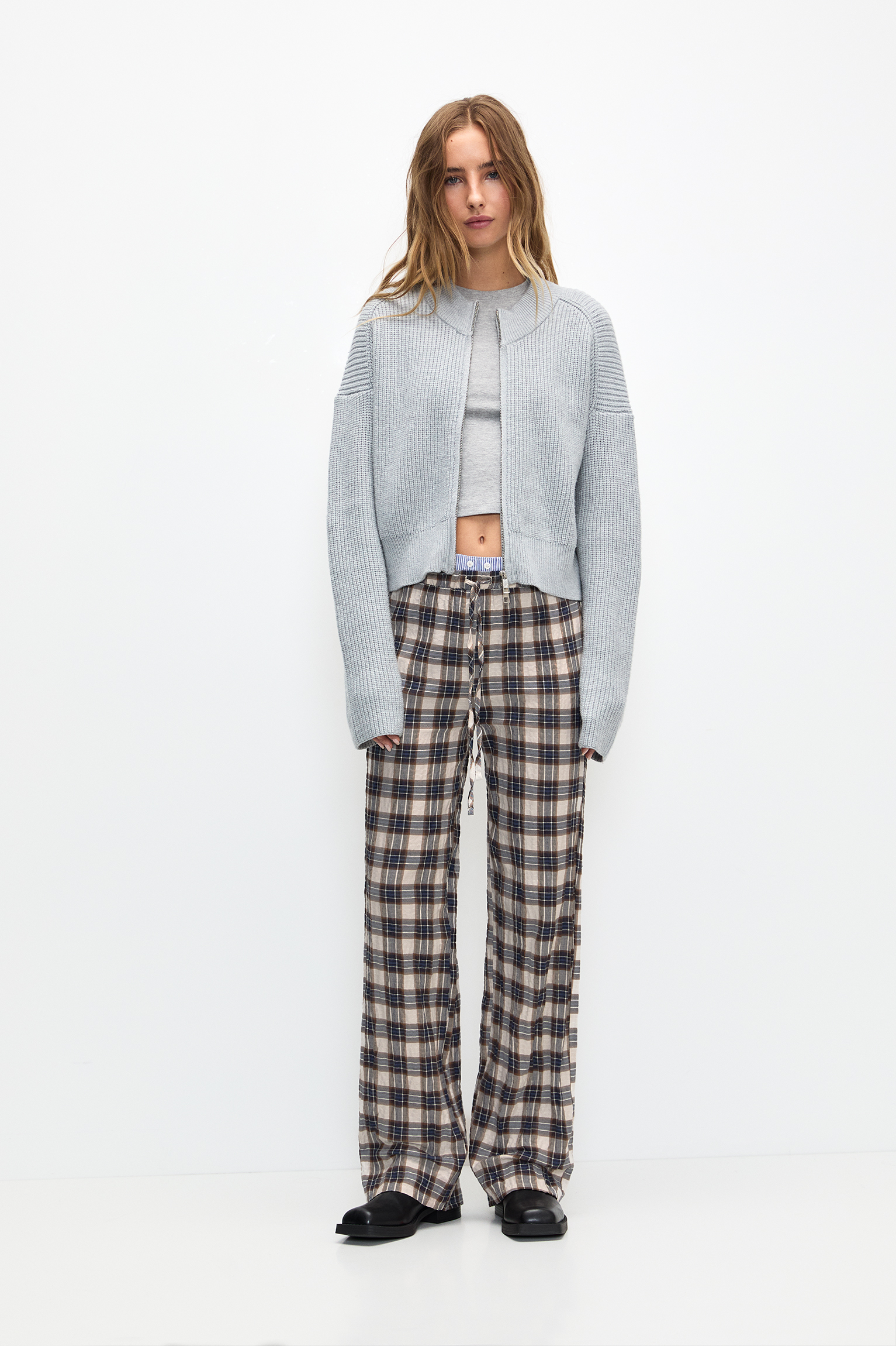 pull and bear checked trousers