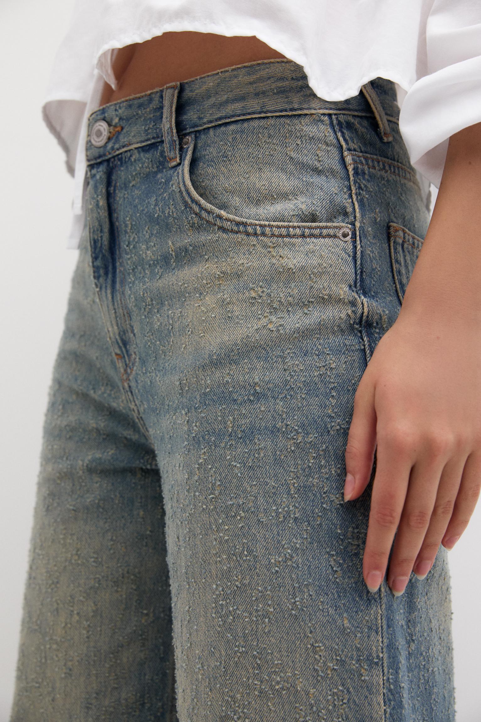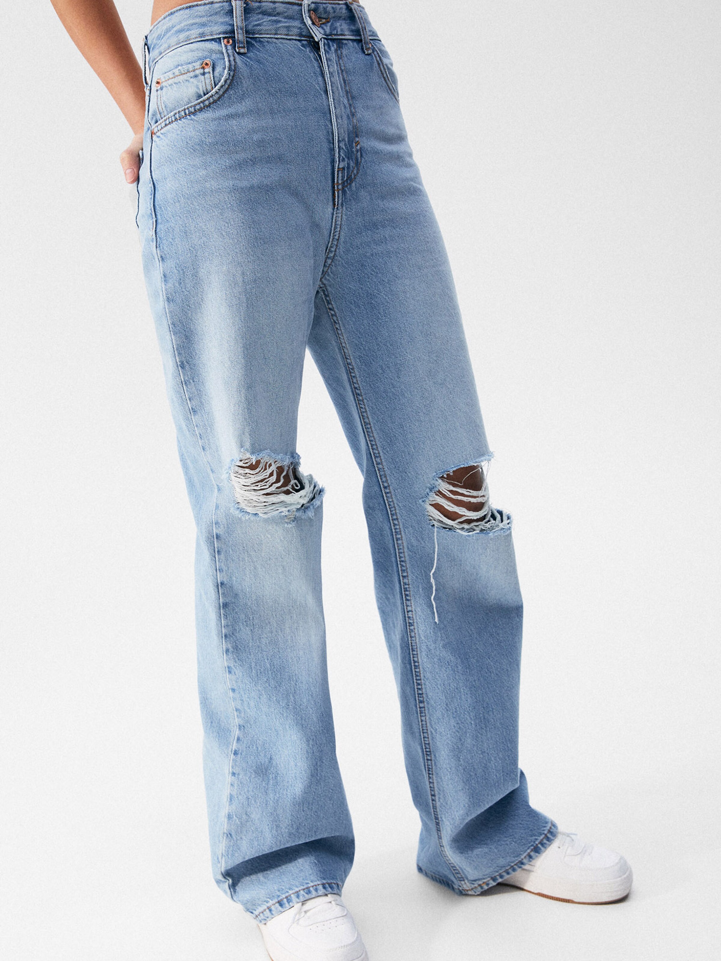pull and bear ripped wide leg jeans