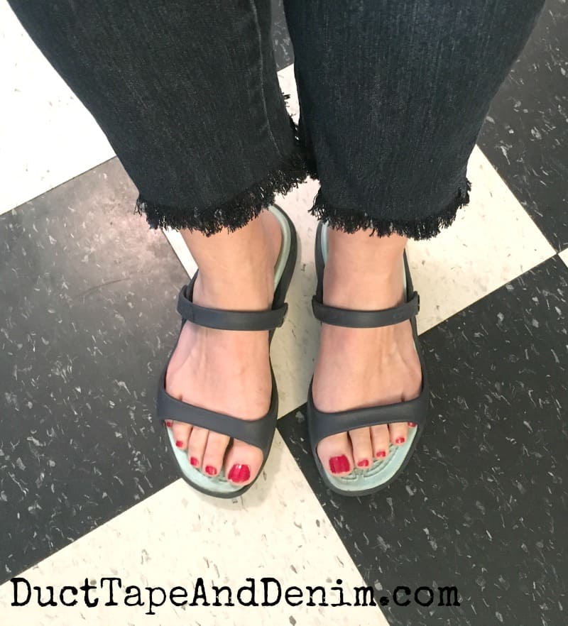pull on frayed hem jeans